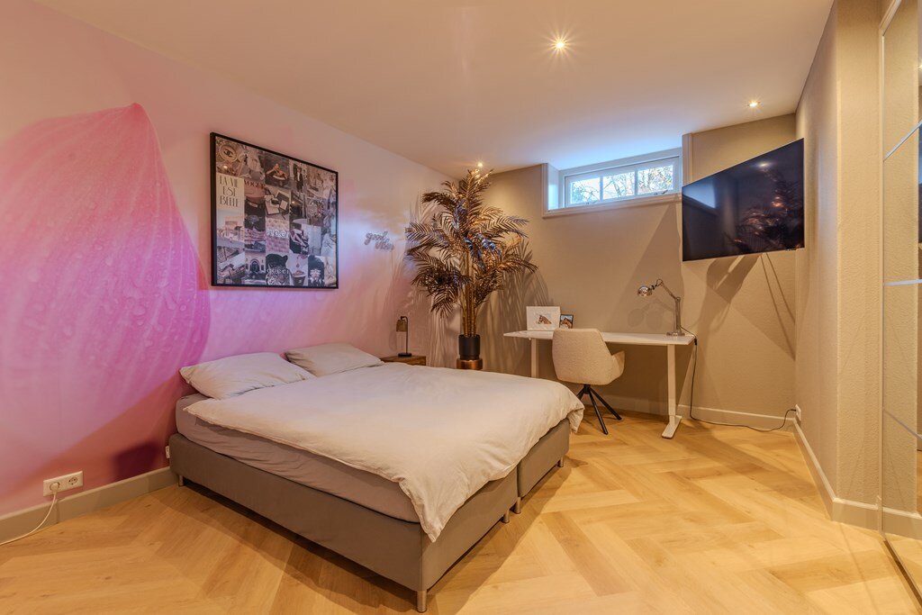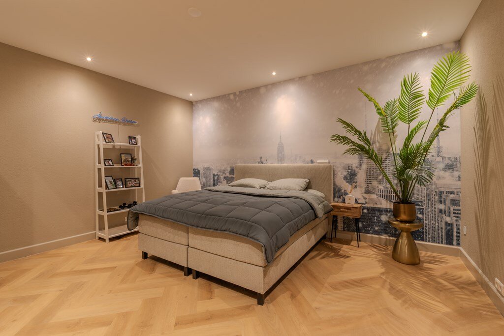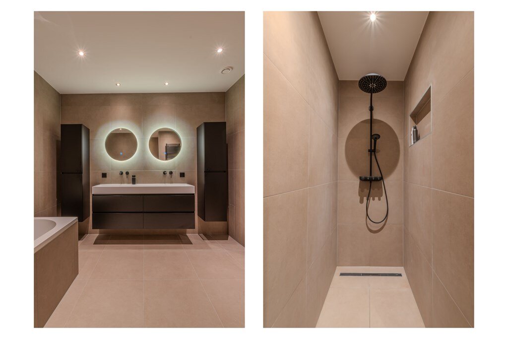 The villa exudes a hotel-chic atmosphere, with warm and inviting spaces and attention to every detail. The combination of natural stone floors, herringbone wooden floors, neutral tones, refined paintwork, and soft accents creates an elegant, serene ambiance. High-quality and sustainable materials are used throughout, ensuring that every space delivers comfort, luxury, and functionality. Thanks to its spacious layout and thoughtful design, it is perfect for a family or guests.