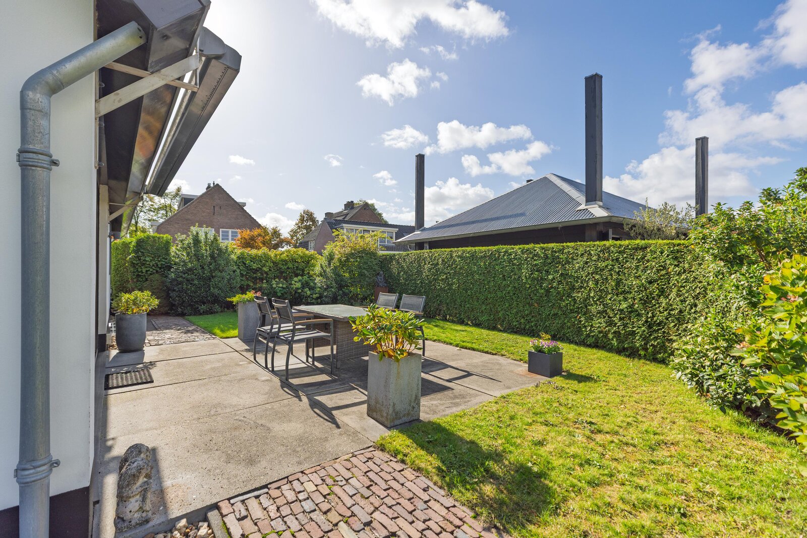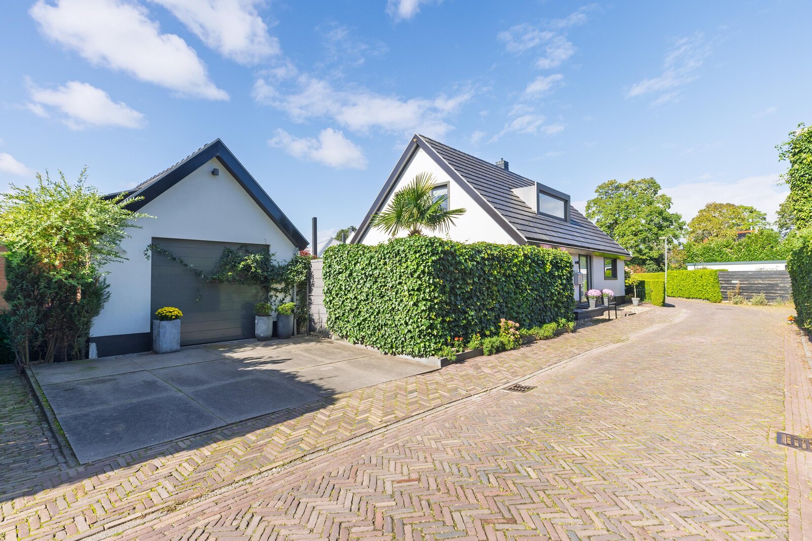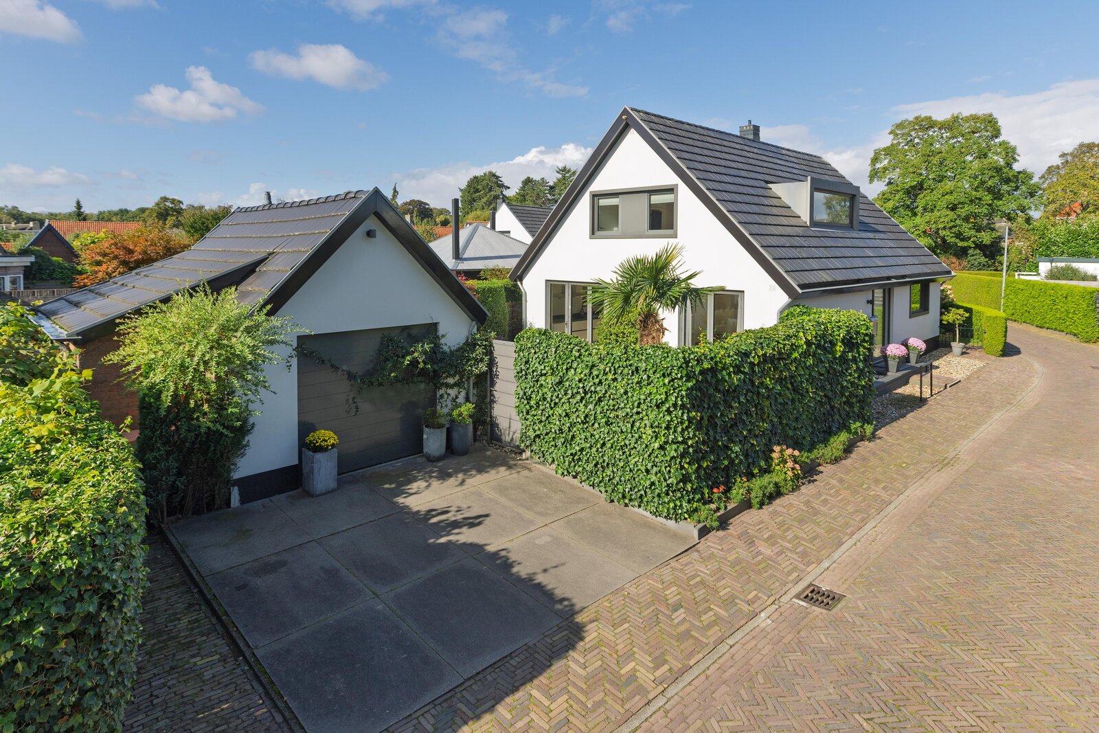 Sfeervol verbouwde villa met vrijstaande garage/atelierruimte. Gelegen aan een van de mooiste laantjes middenin het oude dorp van Laren.