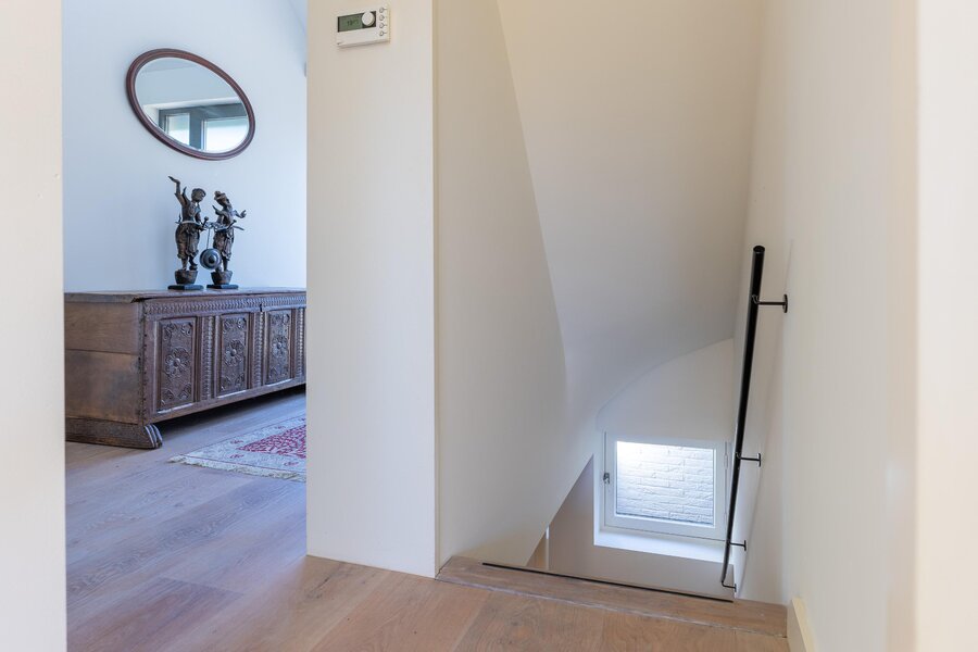 verder biedt deze verdieping nog een grote slaapkamer met daglichttoetreding en een kleinere kamer met eventuele aansluiting wasmachine /droger. Deze verdieping is geheel voorzien van vloerverwarming.