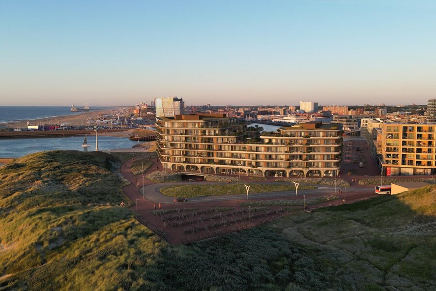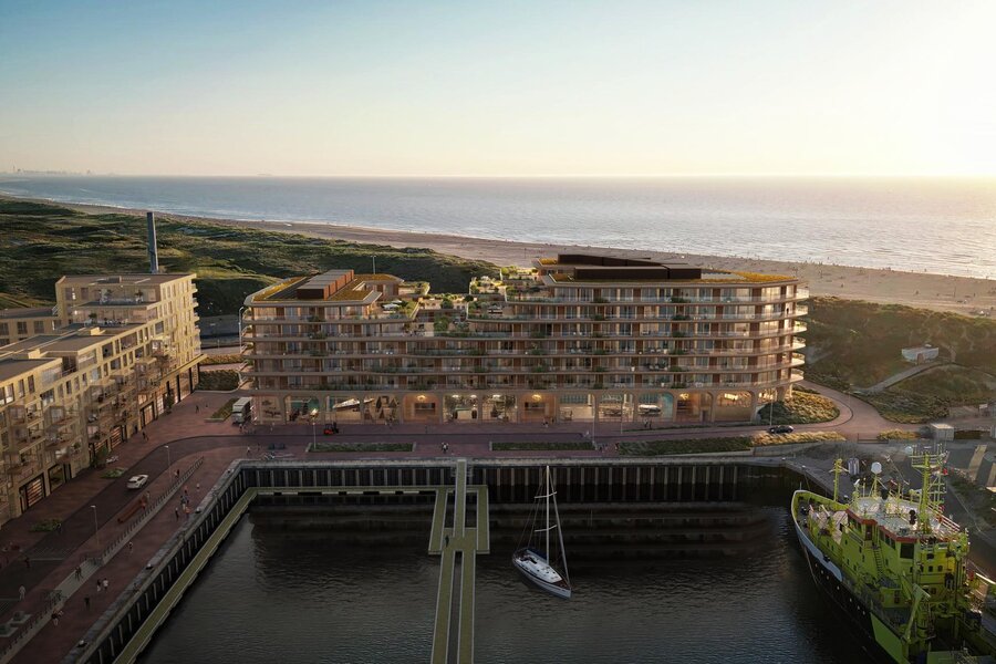 Not only now, but also for decades to come, this beautiful building will serve as a landmark and offer a select group of fortunate individuals unparalleled living pleasure. The sheltered terraces and large windows provide endless views of the sea, beach, dunes, and harbor. The boundaries between indoors and outdoors blur.