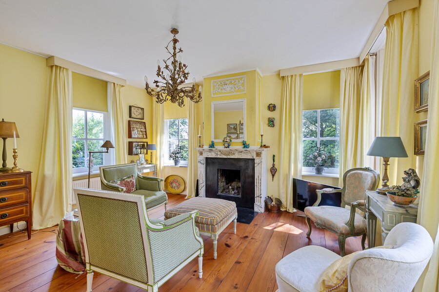 Op de begane grond bevinden zich verder een badkamer en een stijlvolle voorkamer met eveneens een marmeren schoorsteen (circa 1820). De eerste verdieping herbergt twee slaapkamers.