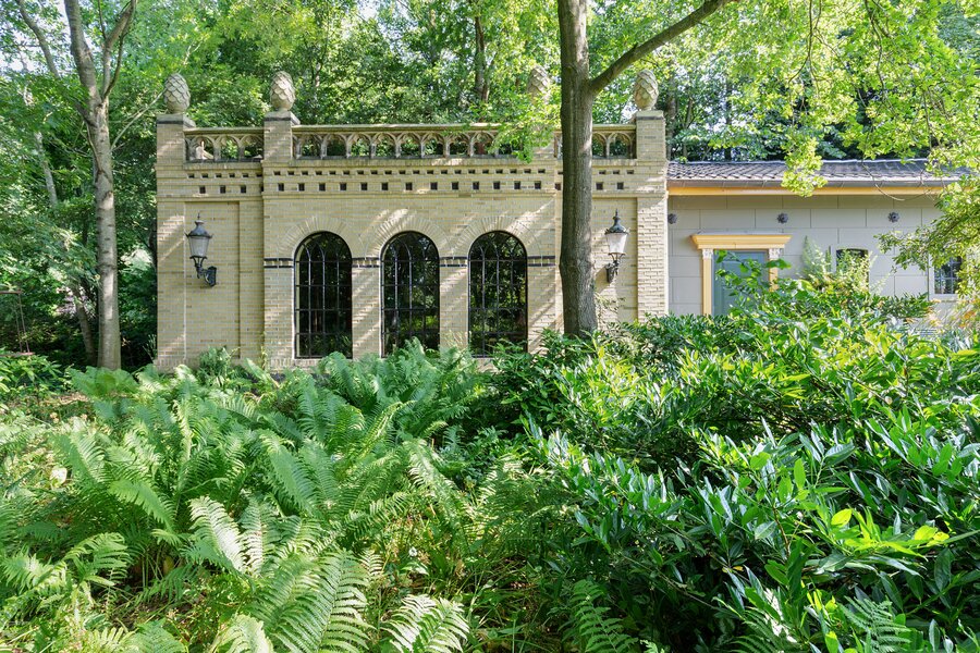 De prachtige tuinkoepel, ontworpen door F. van der Velde, rust op betonnen palen en wordt bekroond door een met goud beklede denneappel, vervaardigd door kunstenaar Axel van der Horst, geïnspireerd op de Marekerk te Leiden. Binnenin zijn cementtegels uit ca. 1920 gelegd en sieren anjertegels uit de 18e eeuw de wanden.
