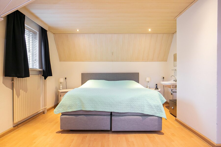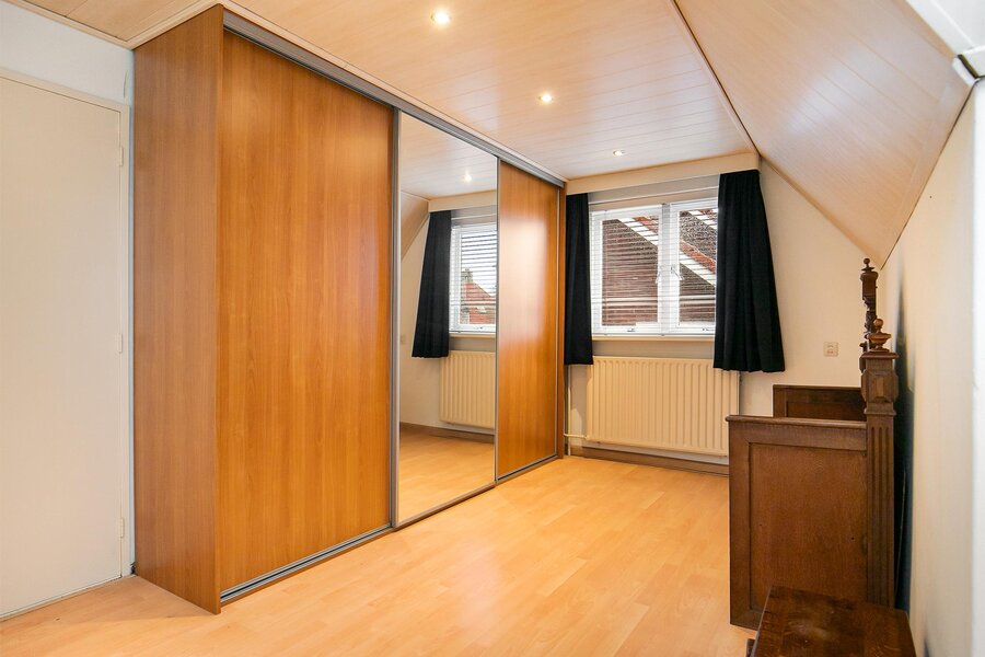 Ruime overloop met toegang tot een logeerkamer voorzien van dakkapel, inbouwkast en deur naar het platte dak, kinderkamer met grote dakkapel en inbouwkast, ouderslaapkamer met inbouwkast aan de voorzijde gelegen, badkamer met douchecabine, wastafel in meubel en wandcloset en waskamer met aansluiting voor de wasmachine en trapopgang naar de tweede verdieping.