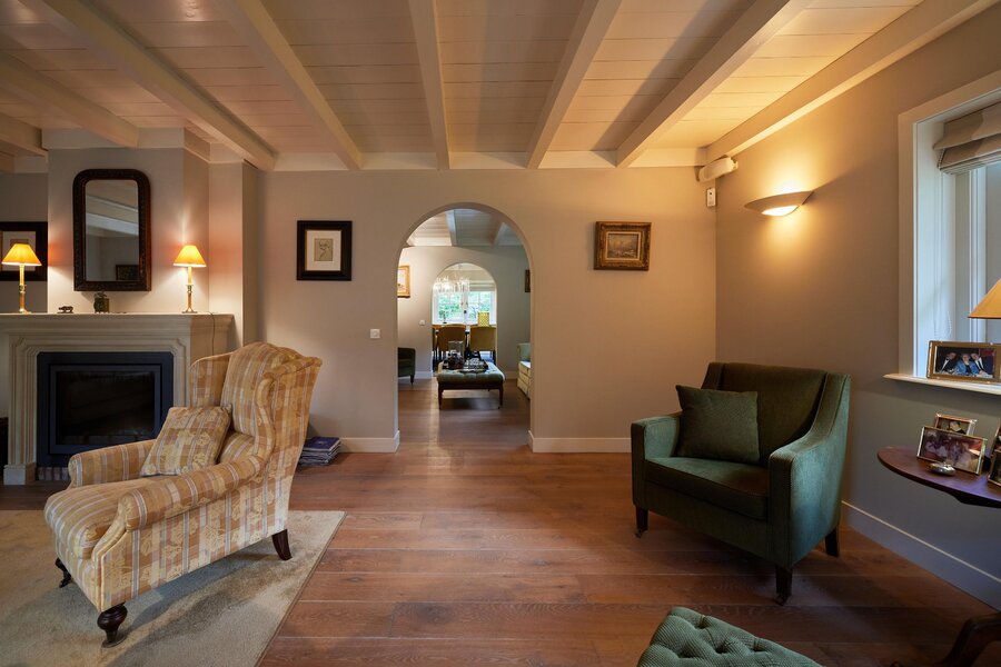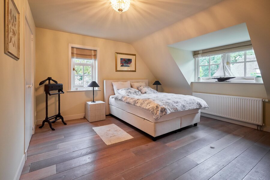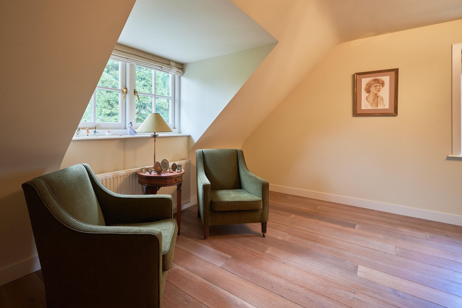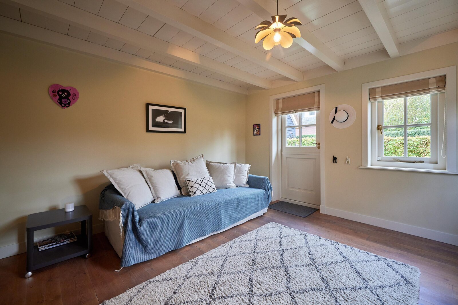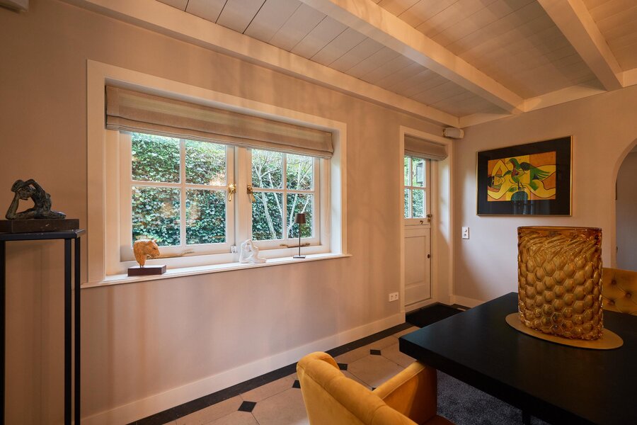 De woonkamer aan de achterzijde is ruim van opzet en wordt gekenmerkt door grote raampartijen die zorgen voor veel lichtinval en een fijne verbinding met buiten. Een comfortabele leefruimte waar rust en privacy centraal staan.