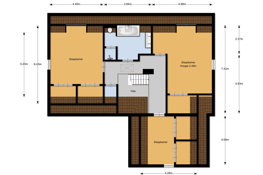 De vide en overloop versterken het ruimtelijke gevoel en dragen bij aan de comfortabele en overzichtelijke indeling van deze verdieping.