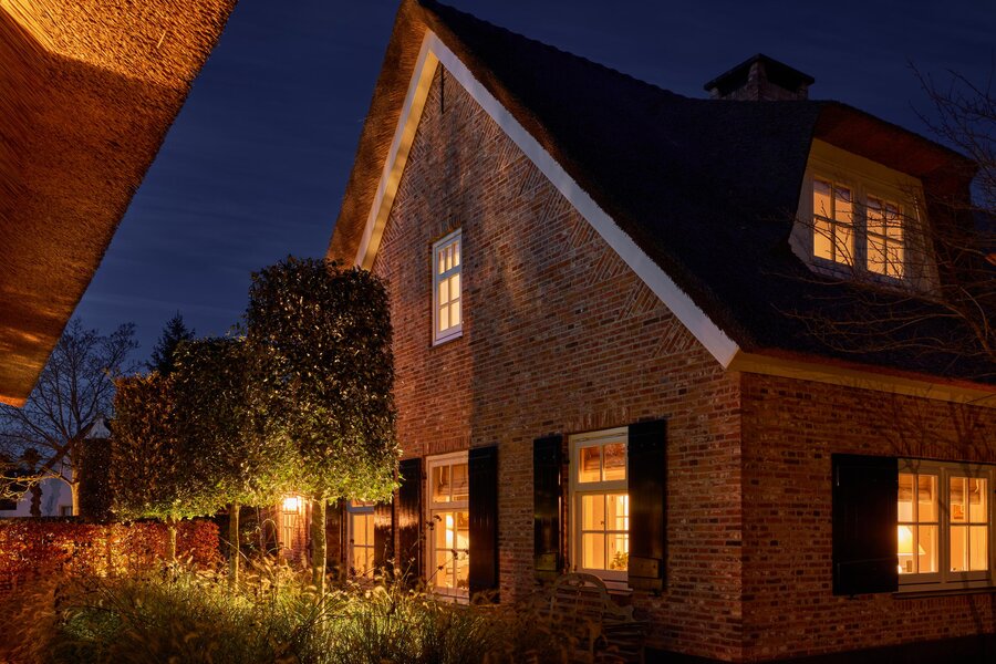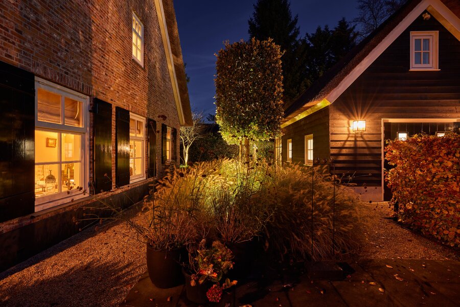 - Fraai onder architectuur aangelegde tuin met verlichting