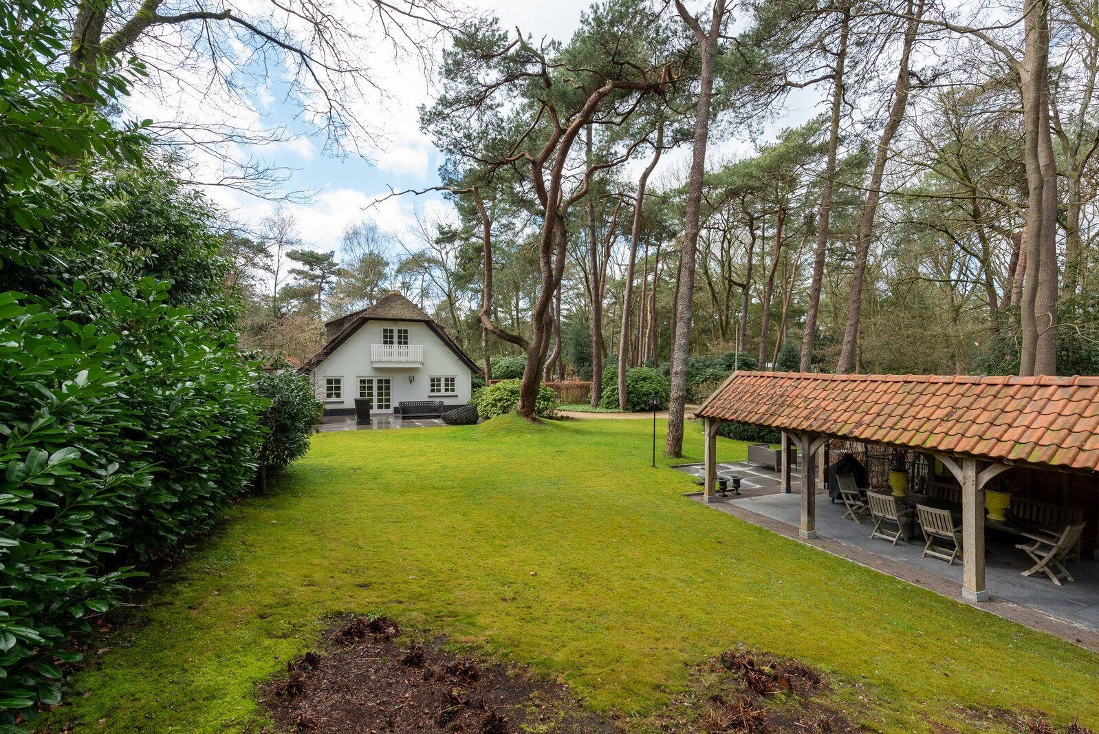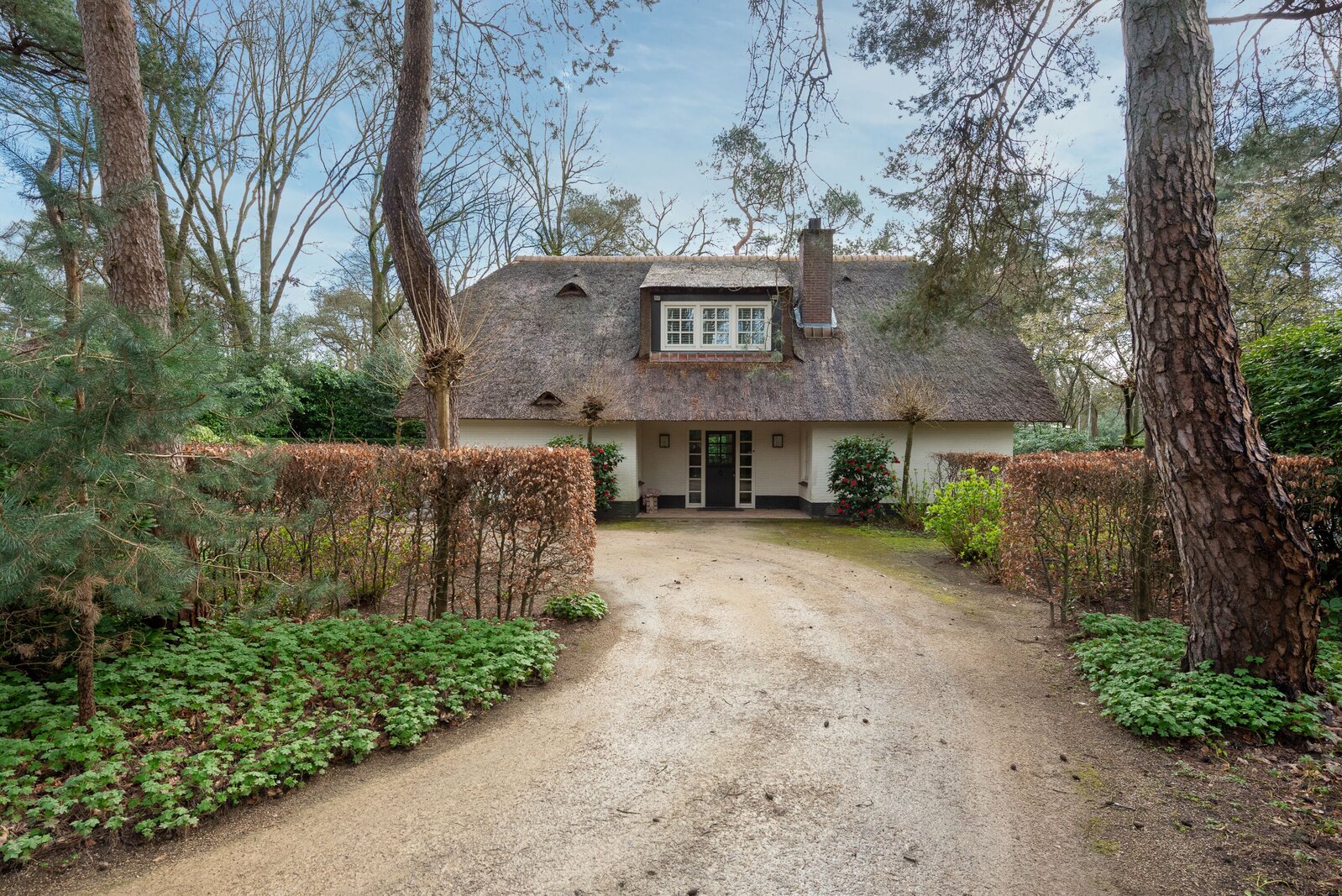 Hidden in the greenery, on an impressive plot of no less than 4,104 m², lies this exceptional thatched country house of rare class. A residence where architecture, comfort and atmosphere blend seamlessly, and where peace, privacy and space come naturally.