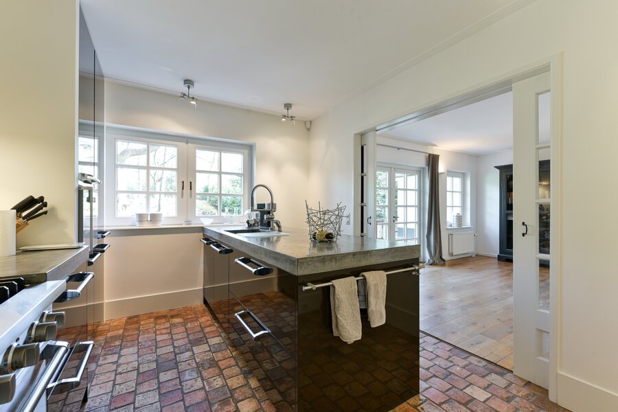 A distinctive feature of this villa is the exceptionally generous additional living space of approximately 100 m², which forms an integral part of the home but can also be used separately if desired. This area has its own entrance, living room, a very spacious semi-basement with natural daylight and room for several bedrooms if desired, making it suitable for a wide variety of purposes. In addition, it features an atmospheric bedroom on the mezzanine level, an extra kitchen and a luxurious bathroom, offering an exceptional degree of flexibility.