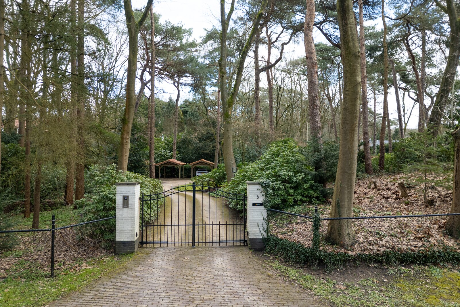 The driveway is accessed through an electrically operated entrance gate and leads to a spacious driveway with turning circle, which is not only practical but also enhances the stately appearance of the estate.