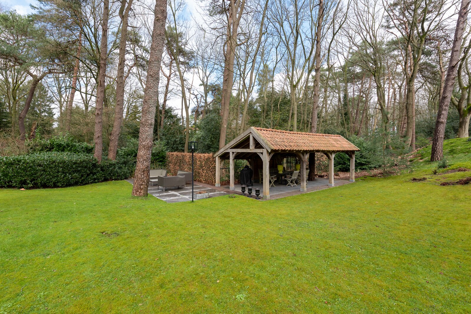 The garden surrounding the villa has been landscaped with great care and vision and forms a natural extension of the comfort found indoors. Several terraces are spread across the plot, allowing you to find a place in the sun or shade at any time of day. The characteristic garden pavilion on the sunny south side offers an especially inviting place to enjoy outdoor living in complete tranquillity.
