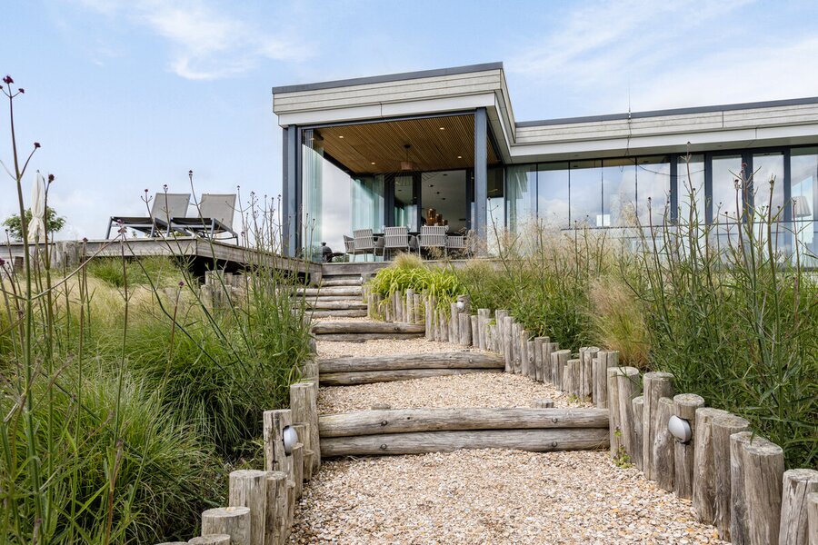 Deze fraaie villa kijkt uit over de Arneplaat en Aardbeieneiland, welke eilanden beheert worden door de vereniging natuurmonumenten.