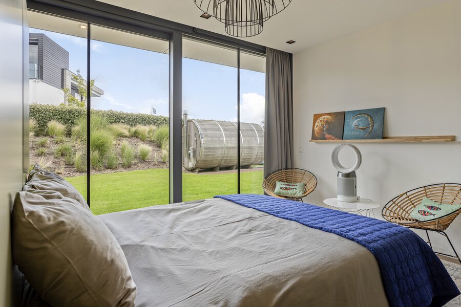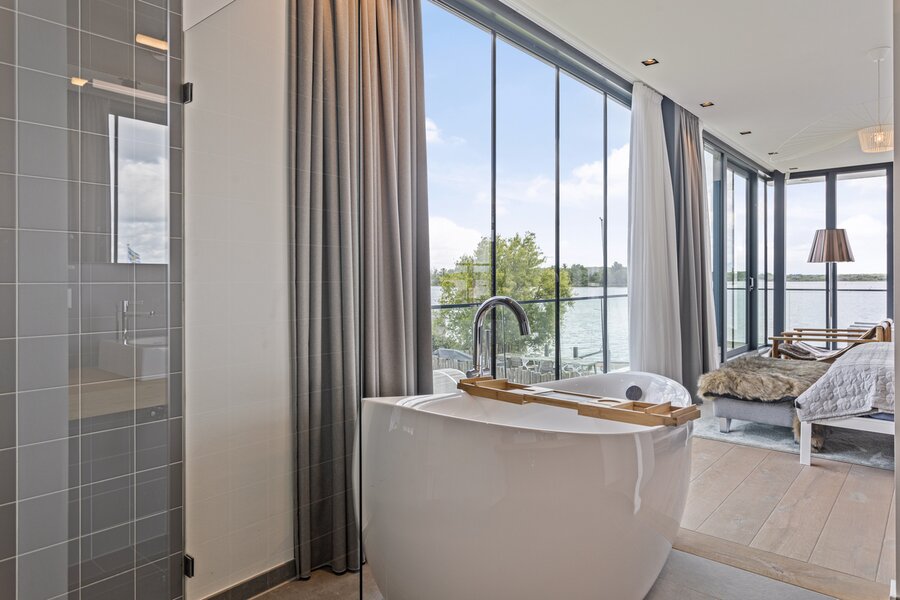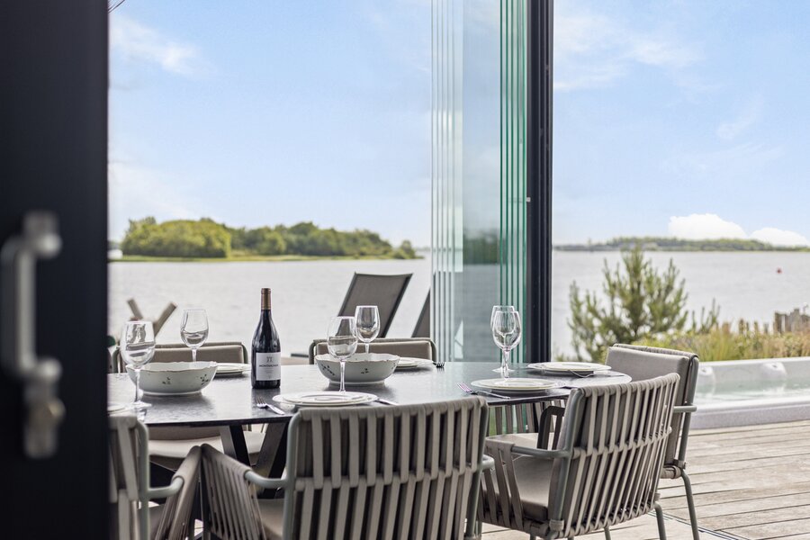 Buiten biedt de enorme privétuin (het object betreft de grootste kavel van het park) met eigen strand direct toegang tot het meer, ideaal voor watersportliefhebbers en natuurliefhebbers. Hier kunt u een flinke boot aanmeren aan uw eigen steiger of simpelweg genieten van de rustige omgeving, vanuit uw jacuzzi. Klaar met varen? Parkeert u de boot in het nabijgelegen boathouse. De nabijheid van Arnemuiden, Middelburg, Goes, Domburg en andere omliggende steden en dorpen maken dit de perfecte plek voor een luxe vakantieverblijf.