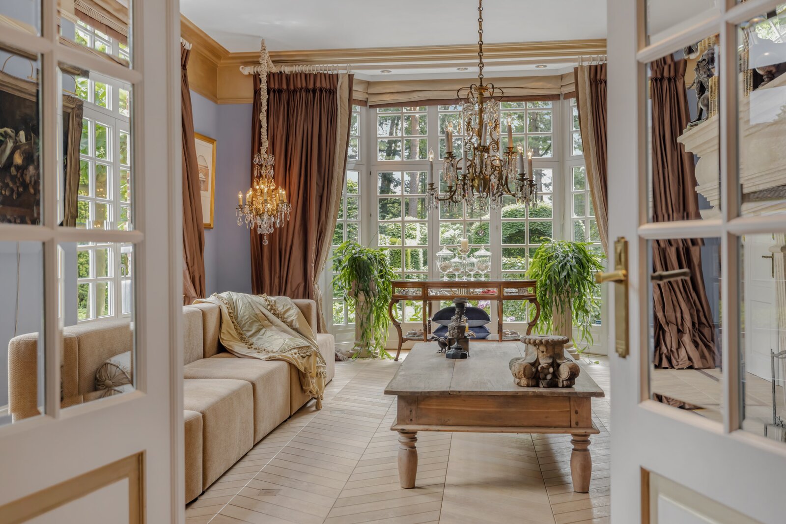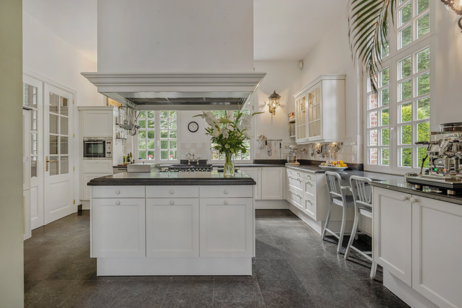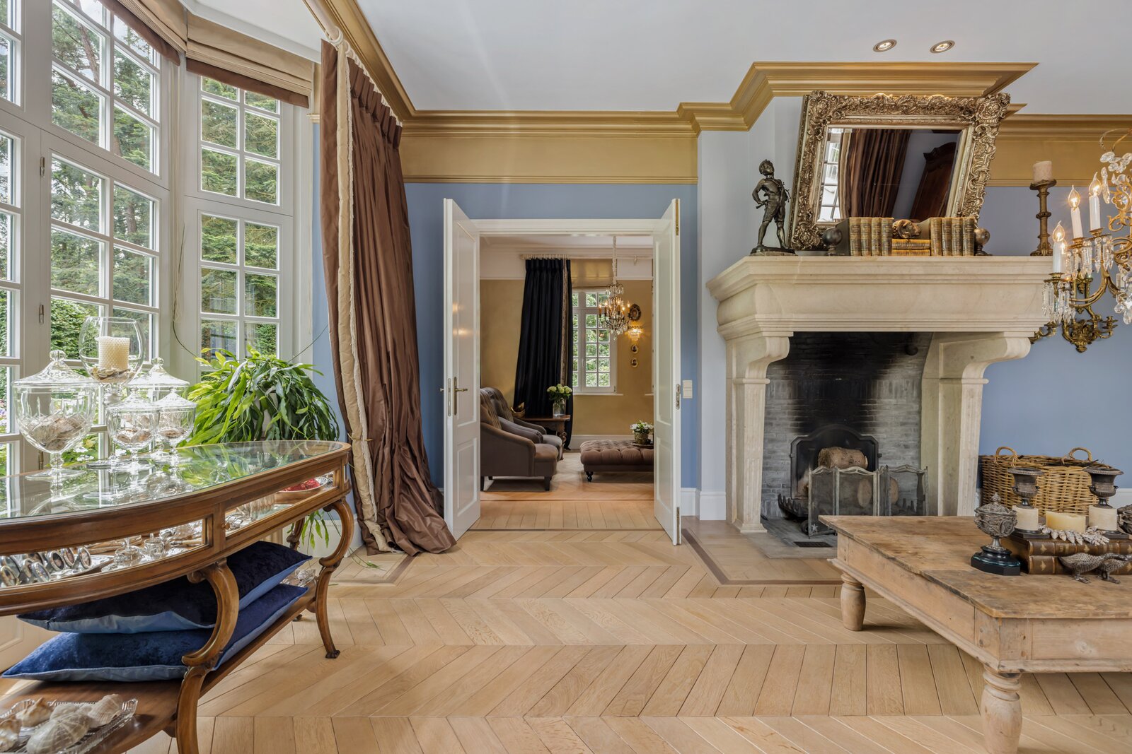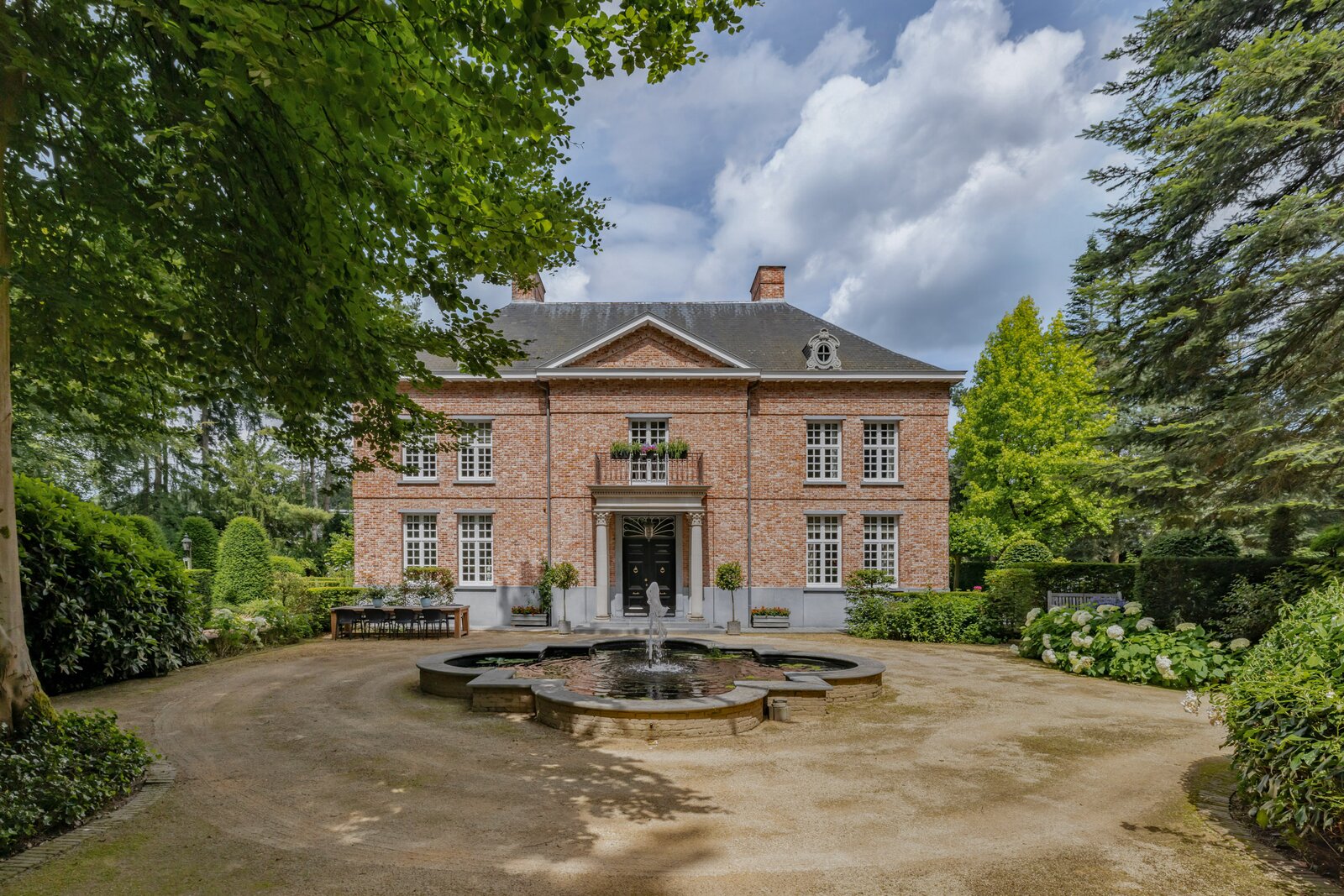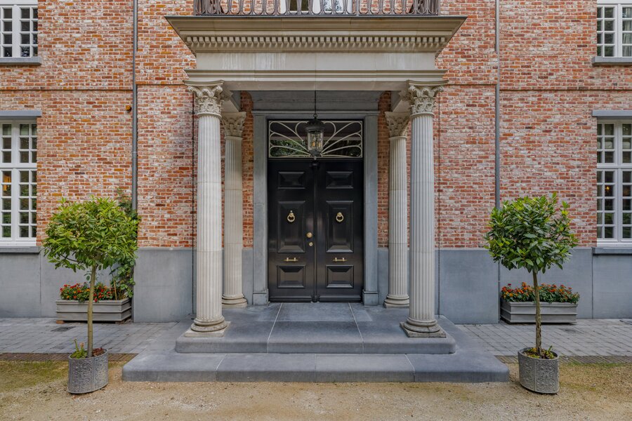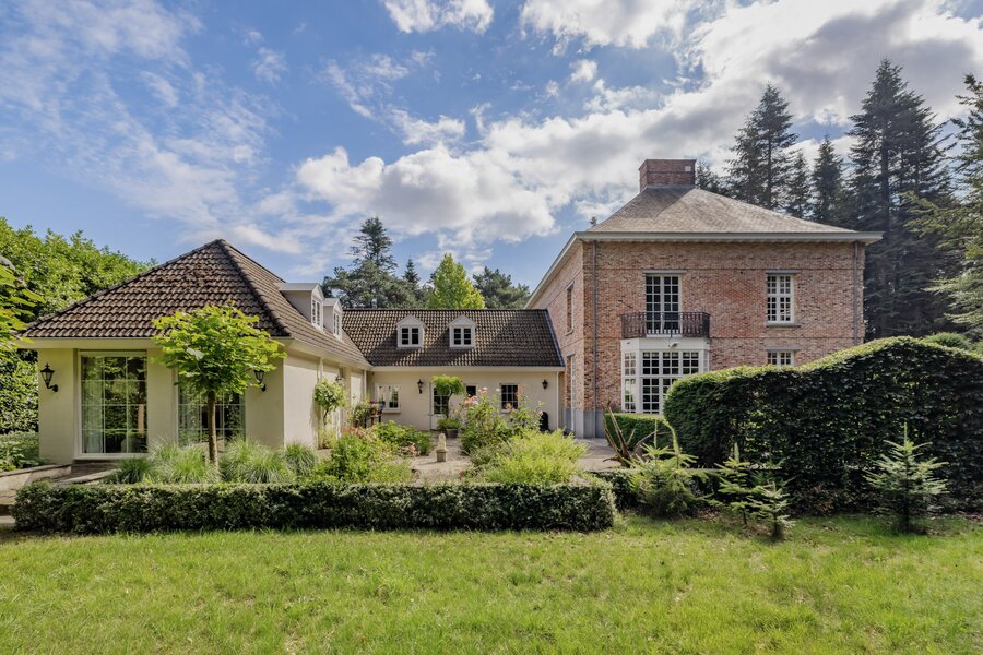 Behind a discreet entrance lies a green estate where the current owners have enjoyed complete peace and privacy for over thirty years. What began with the original home at the rear of the property evolved in 2002 into an imposing chateau-style architectural villa at the front — designed by Vlassak-Verhulst, specialists in high-end country houses and manors.