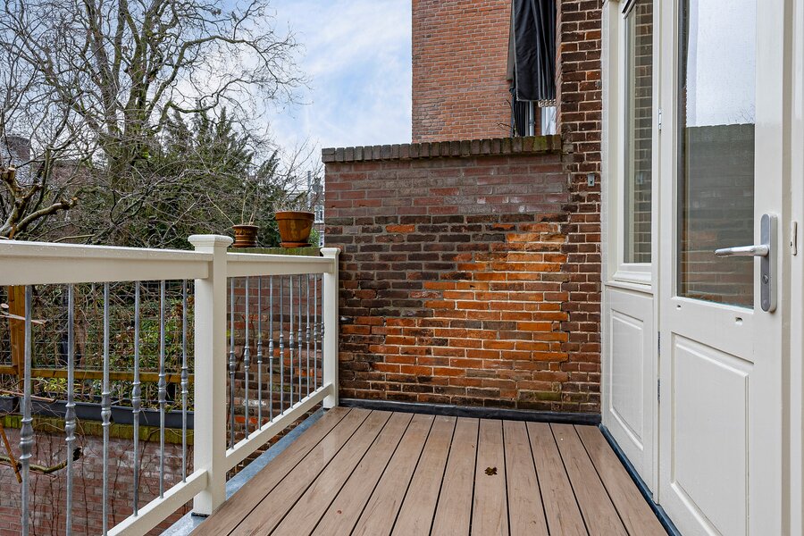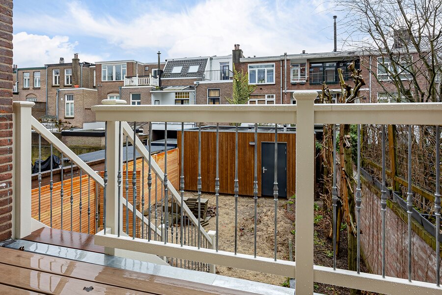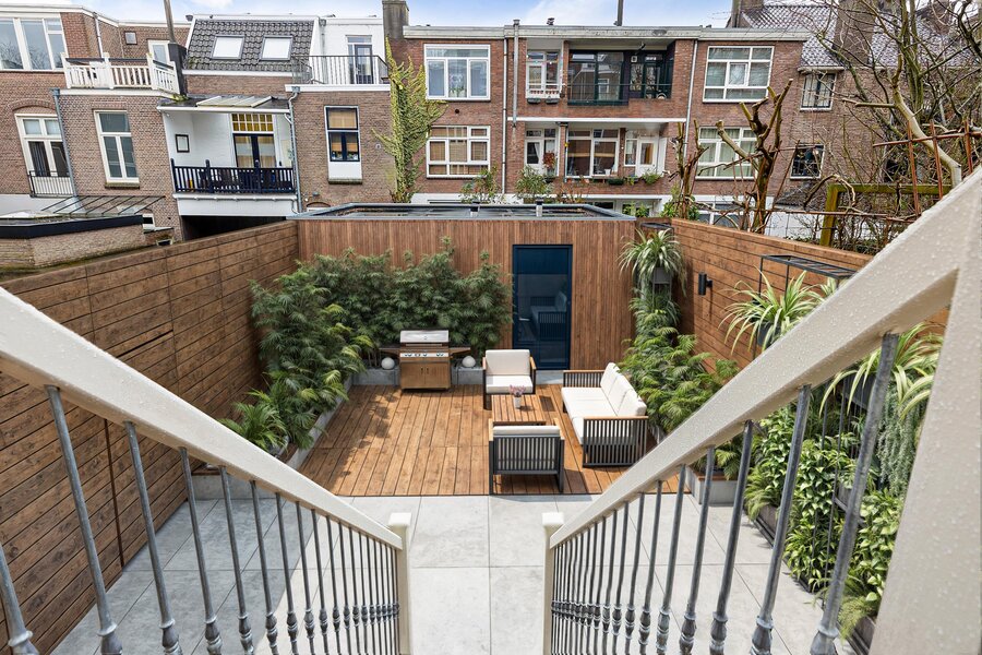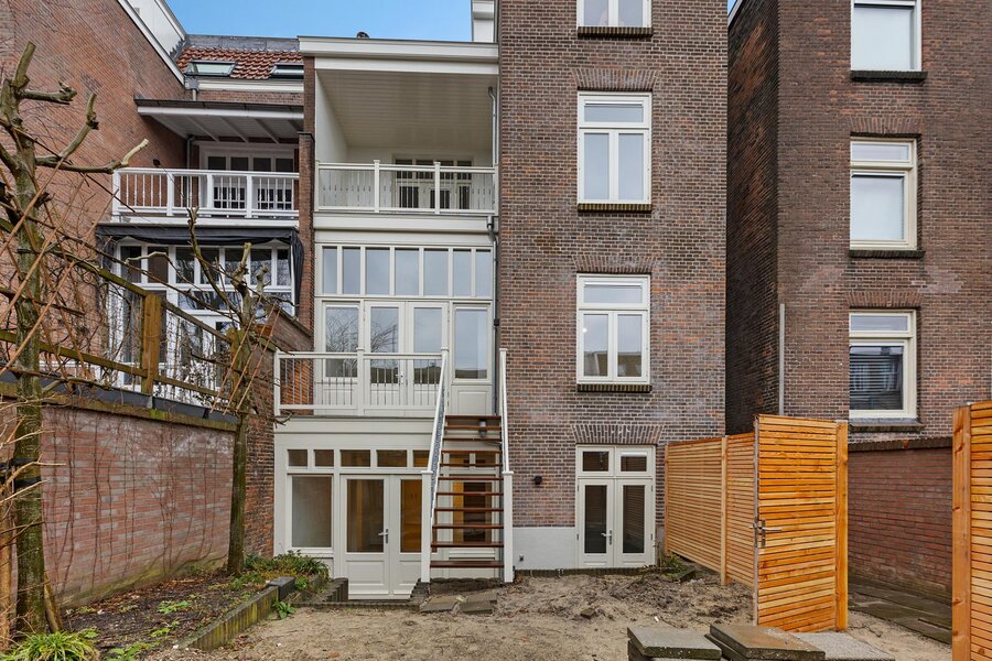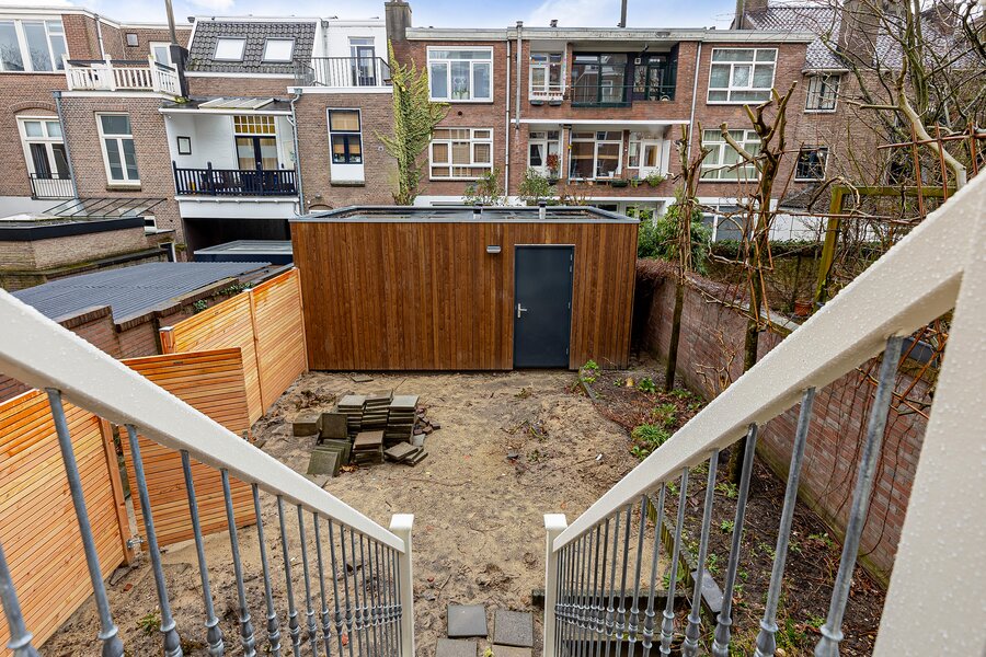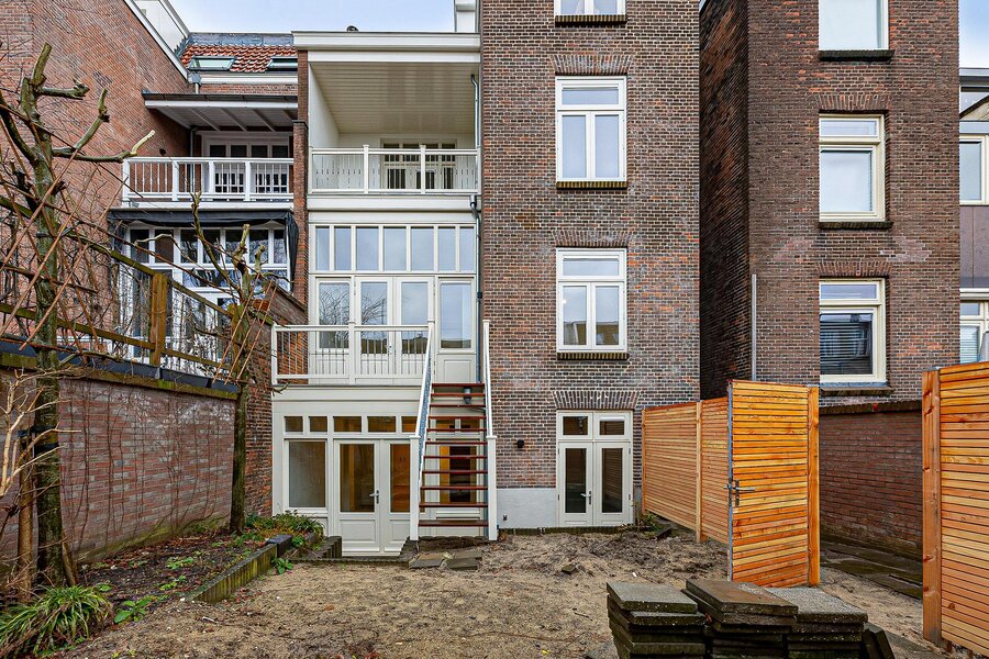Accessible via a staircase from the balcony or through the French doors from the bedroom, the delightful inner garden is located on the sunny southwest side. This space offers the opportunity to create a peaceful green retreat and enjoy the outdoors in tranquility, right in the heart of the city. At the back, the storage units are situated, and through a right of way, you have the possibility to move bicycles to and from the storage area.