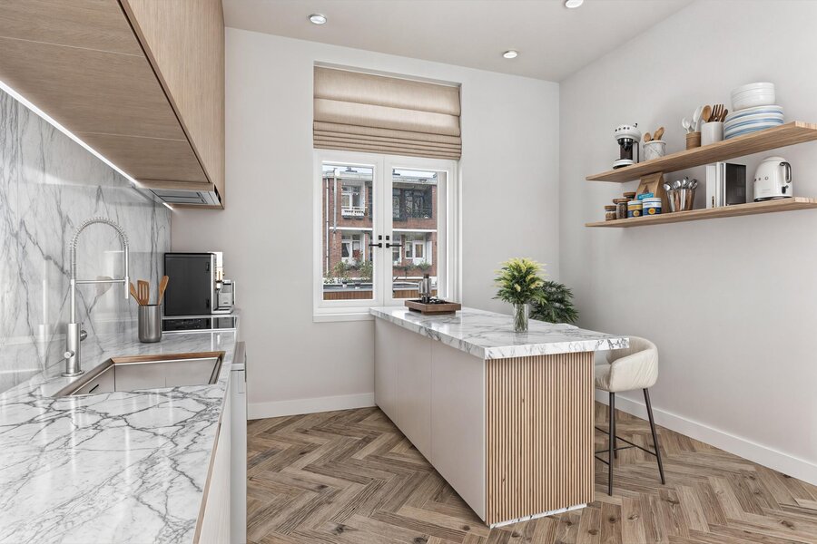 This beautifully renovated apartment, situated in an elegant and historic townhouse, offers a unique opportunity to live in one of the city's most desirable neighborhoods. The entire townhouse has undergone a thorough renovation, resulting in three high-end new apartments. Apartment 39 is a true eye-catcher, featuring refined finishes and an eye for detail.