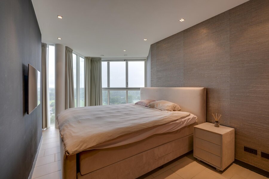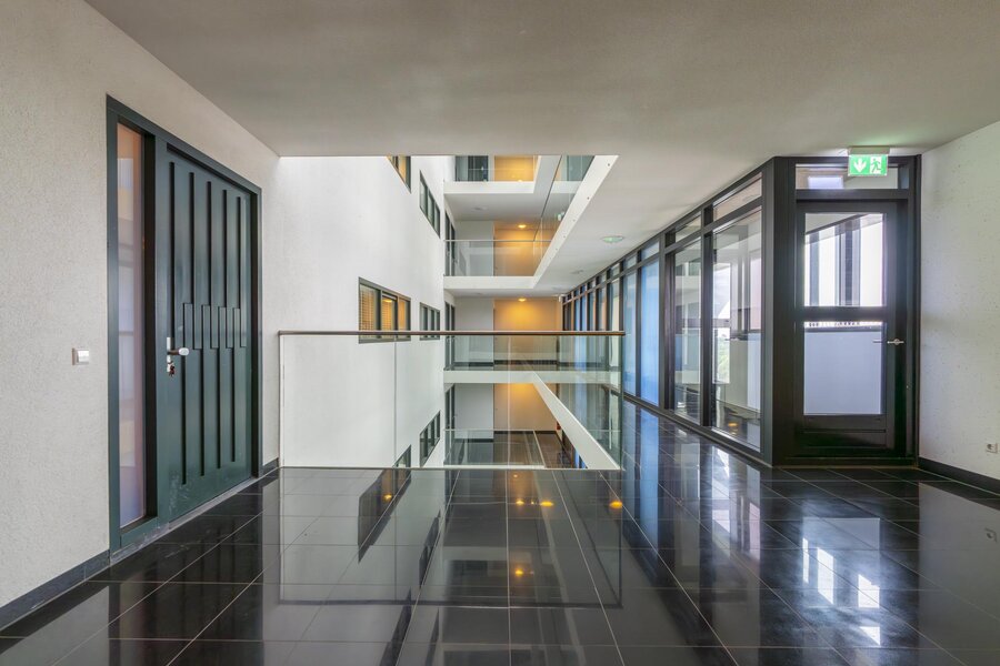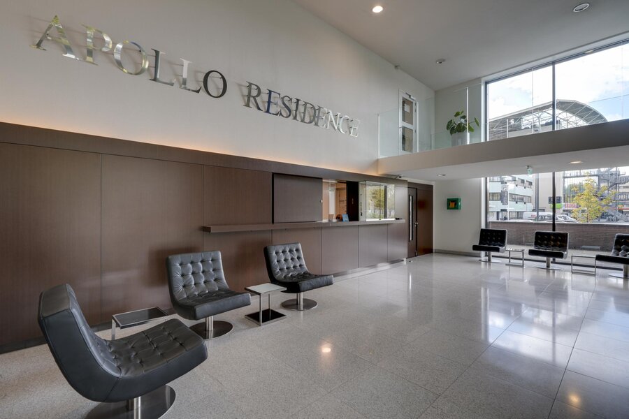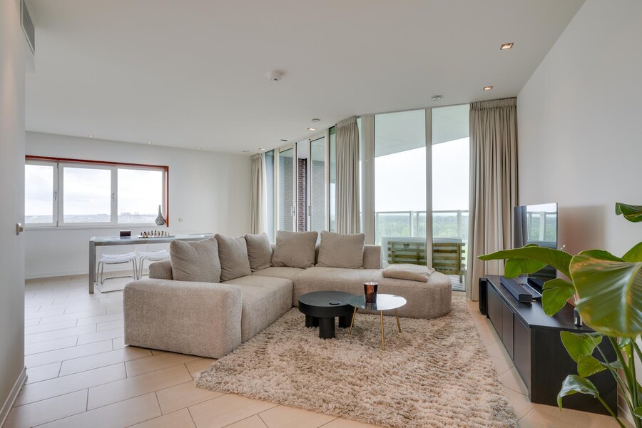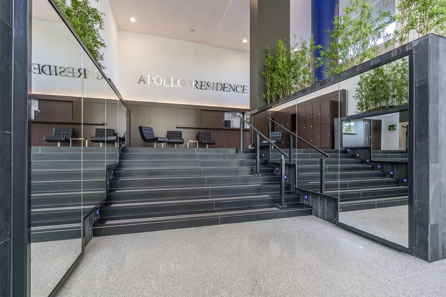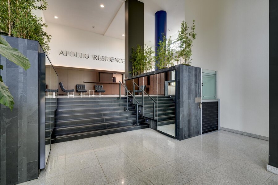 Living in the Apollo Résidence means living in peace, space, and enjoying your well-deserved privacy. This residential tower is designed with style, comfort, and class in mind. The building features a beautiful entrance with a reception area where you can meet the concierge, available six days a week, to assist with various tasks and requests within the building. Additionally, there is a gym and sauna (wellness) exclusively available to the residents of Apollo Résidence.