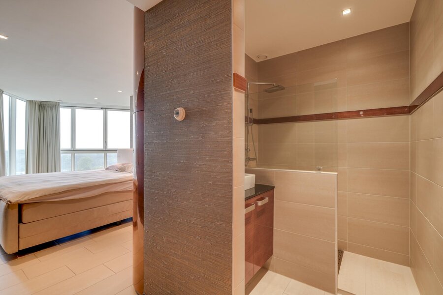 It is also possible to convert the two units into one luxurious mega-apartment. Large floor-to-ceiling windows are a defining feature, offering phenomenal views from every room. The same stunning views apply to the spacious south-facing balcony.