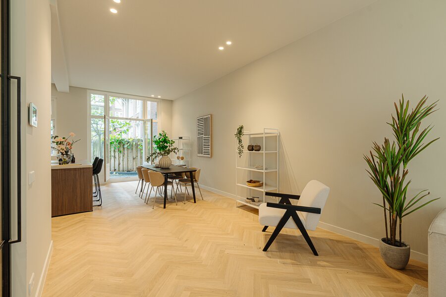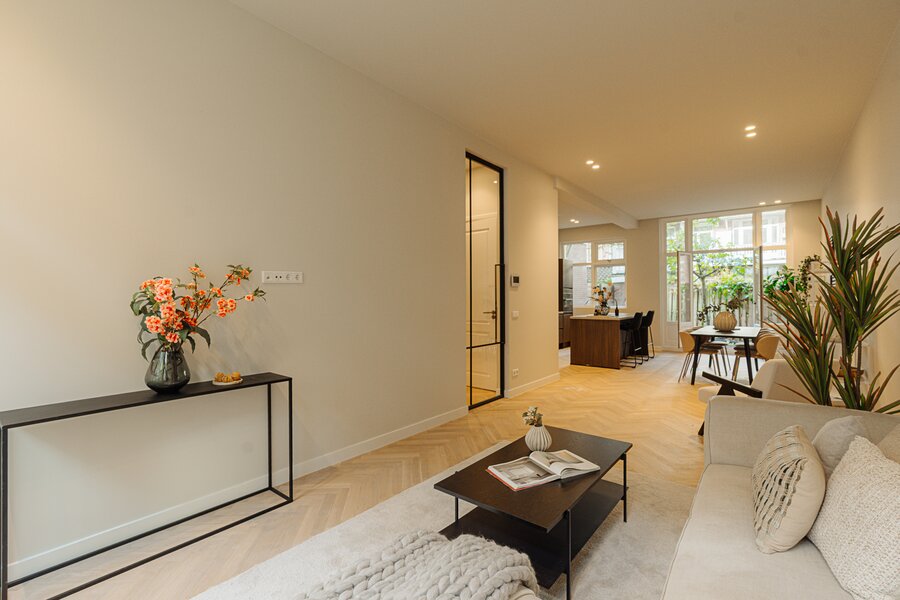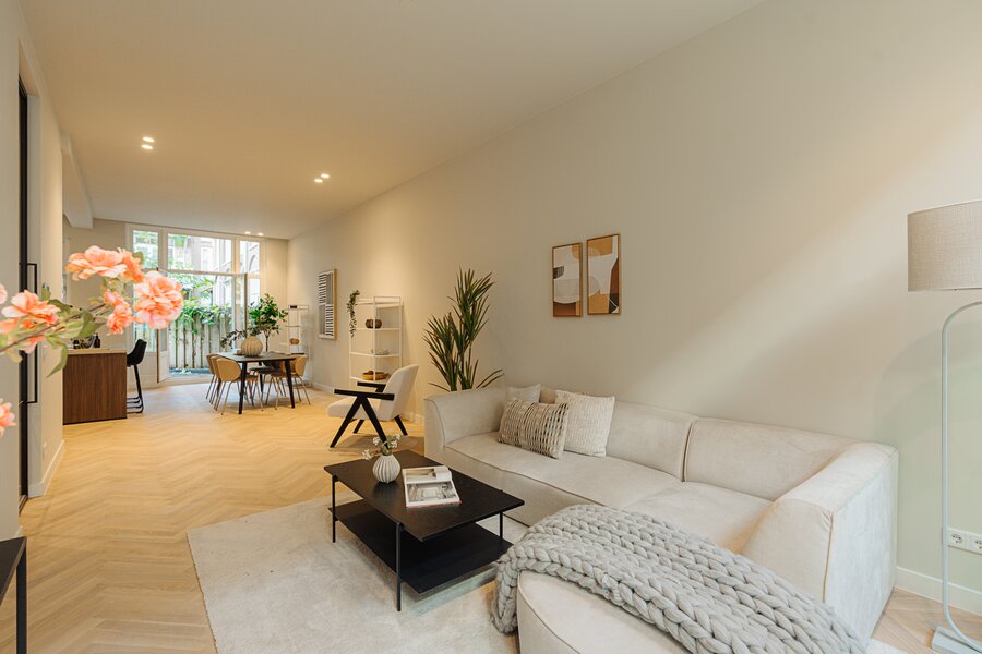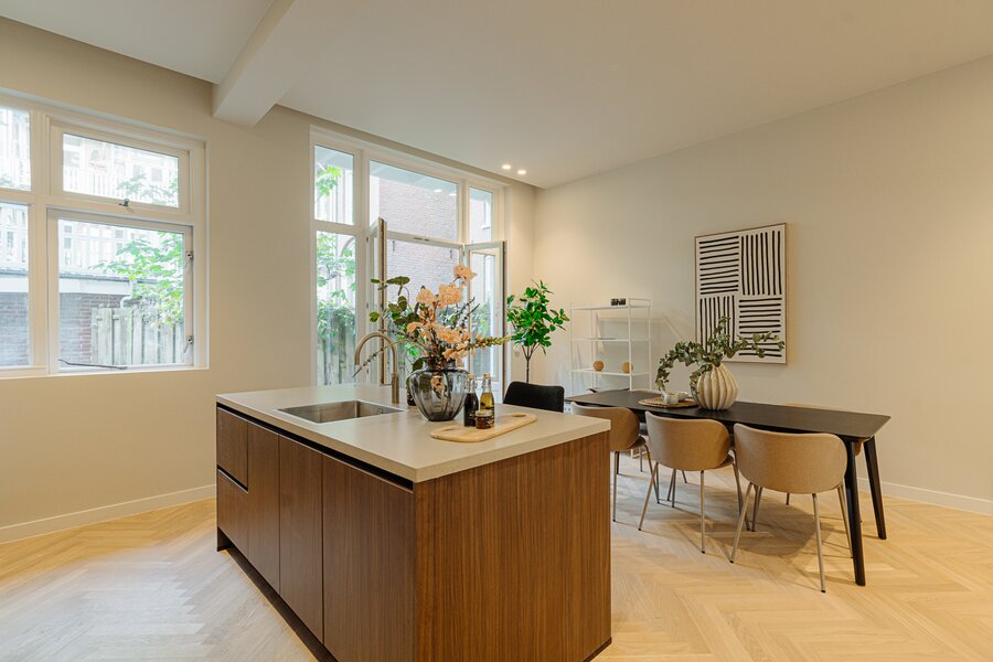 High-quality, luxuriously renovated double ground-floor apartment of approx. 116 m² (measured according to NEN standards), located on freehold land, featuring three bedrooms and a beautiful open-plan kitchen.