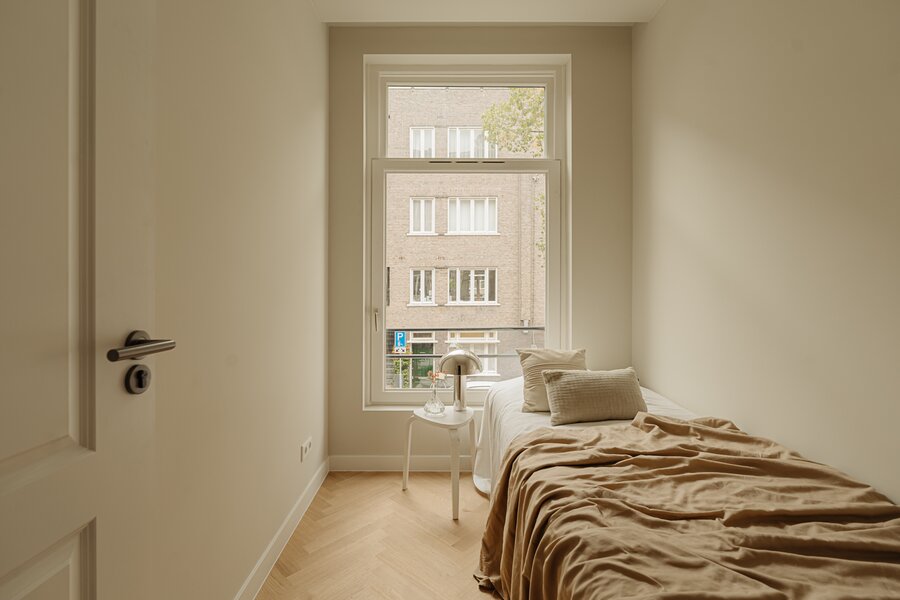 The property is situated in a quiet street in a prime location in Amsterdam Oud-West. The apartment has just been completely renovated and is available for immediate move-in.