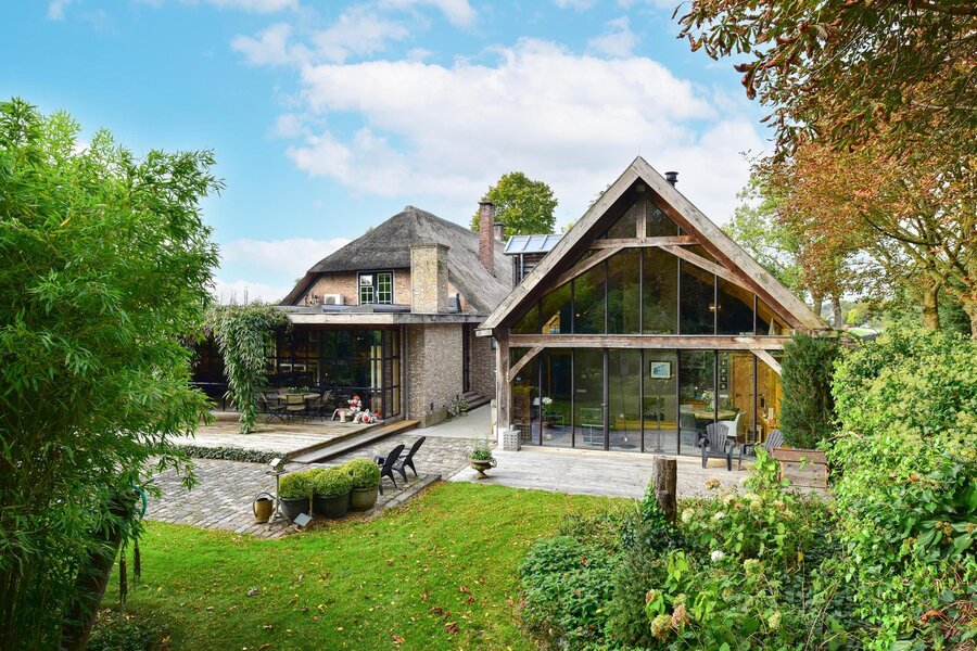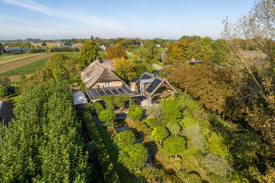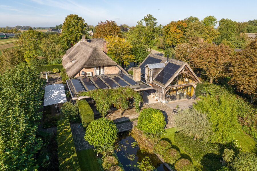 Ultieme vrijheid, wonen en werken. Op dit landgoed met familiehuis en luxe, eikenhouten bijgebouw met kantoor/gastenverblijf komt het allemaal samen. De imposante glazen pui van het kantoor met zicht op de tuin zorgt voor inspiratie. De twee gashaarden, badkamer en de verdieping maken het kantoor ook geschikt als gastenverblijf. Voorts zijn er 73 zonnepanelen aanwezig voorzien van de nieuwste generatie omvormers (2025) welke middels een Energie Management Systeem (EMS) de accu’s (2025) aansturen. Hiermee is de installatie toekomstbestendig en ook geschikt voor dynamische energiecontracten. Kortom, hier verwezenlijkt u in alle comfort uw dromen en maakt u fijne herinneringen.