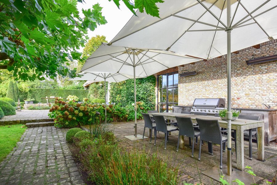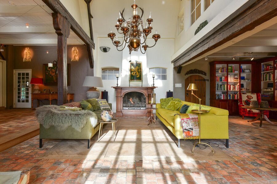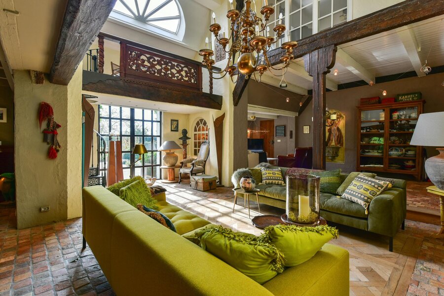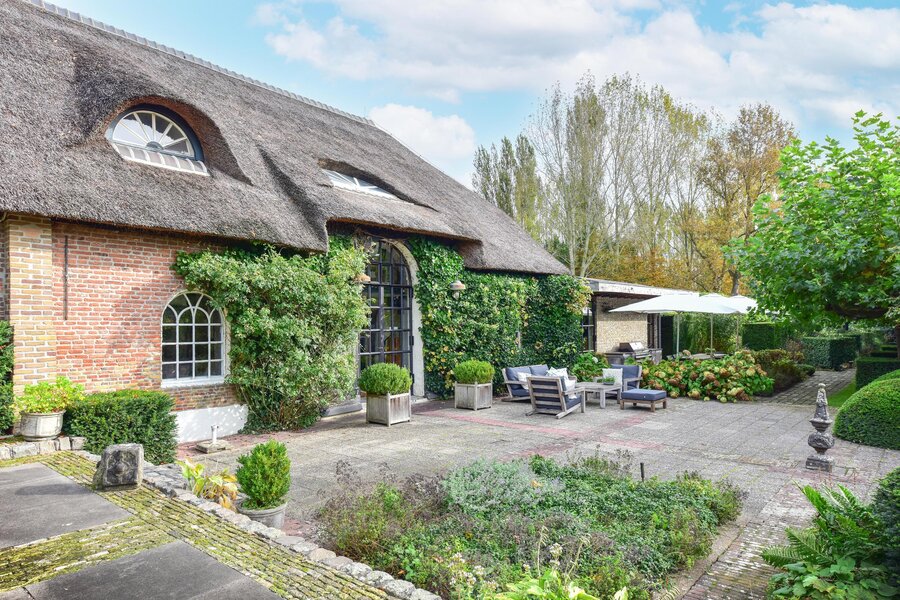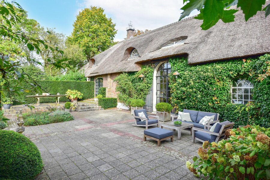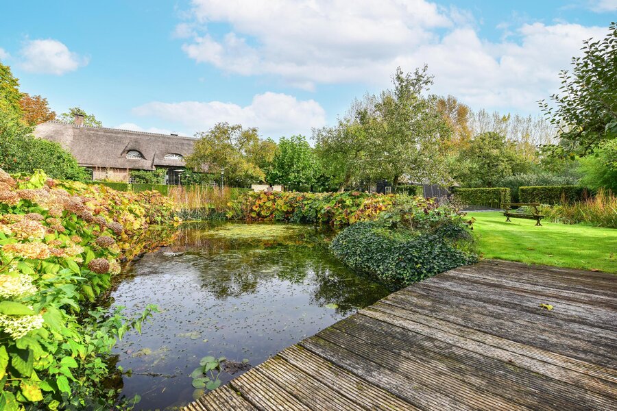 Wandelen langs de vijvers en lanen in je eigen park en even bijkomen met een kopje koffie bij de imposante schouw in de woonkeuken. Wonen in hofstede De Heulhoeve betekent genieten van de ultieme vrijheid die dit schitterende landgoed biedt. Het leven stroomt hier binnen en buiten. U deelt dit landgoed met een diversiteit aan vogels, zoals de fazant en de Vlaamse gaai. Daarnaast bezoeken hazen en soms ook reeën de meer dan royale parktuin. De monumentale hoeve, stammend uit 1750, functioneerde tot midden jaren 60 nog als boerderij. Toen kocht de heer Homburg, een Amsterdamse antiquair, De Heulhoeve. Hij verbouwde het pand met allerlei antieke elementen, zoals beelden, houtsnijwerk en deuren uit Frankrijk en Spanje, tot woonboerderij. Het unieke, robuuste karakter dat de antiquair creëerde, ademt nog altijd door de hofstede. De sfeer van het goede leven is tot in elke vezel voelbaar in de bijzondere living waar de hoge schouw en zichtbare gebinten voor gezelligheid zorgen. In de woonkeuken scheppen de grote raampartijen met roedeverdeling en het balkenplafond geborgenheid. Hier tafelt u urenlang met familie en vrienden om vervolgens een laatste drankje te nuttigen bij de imposante schouw. En wat dacht u van een afsluitende wandeling in uw eigen parktuin. Tuinarchitect Arend Jan van der Horst borduurde voort op het terrasontwerp van Mien Ruys en ontwierp een verrassend park met meerdere waterpartijen waaronder een grote, natuurlijke vijver met een steiger. Hier geniet u samen van de opkomende of ondergaande zon.