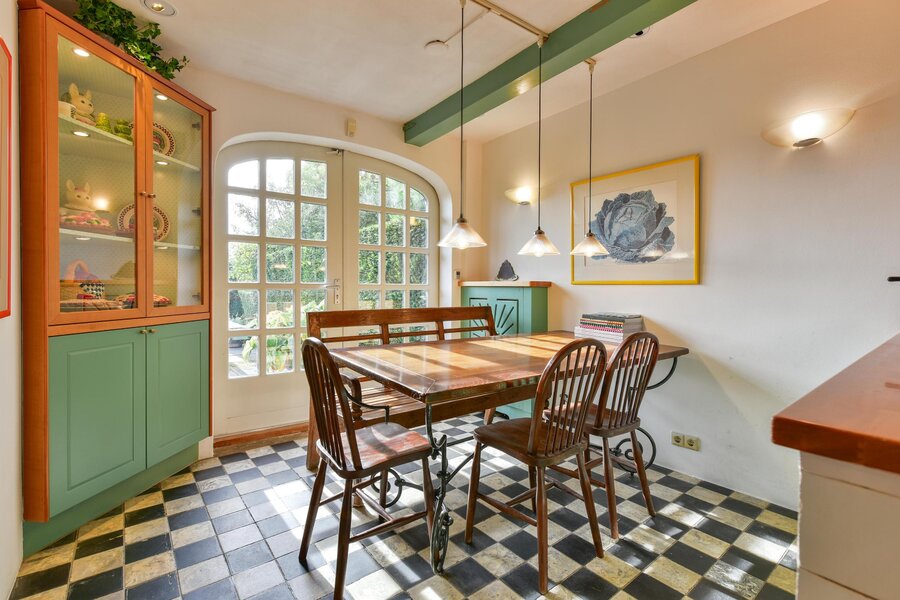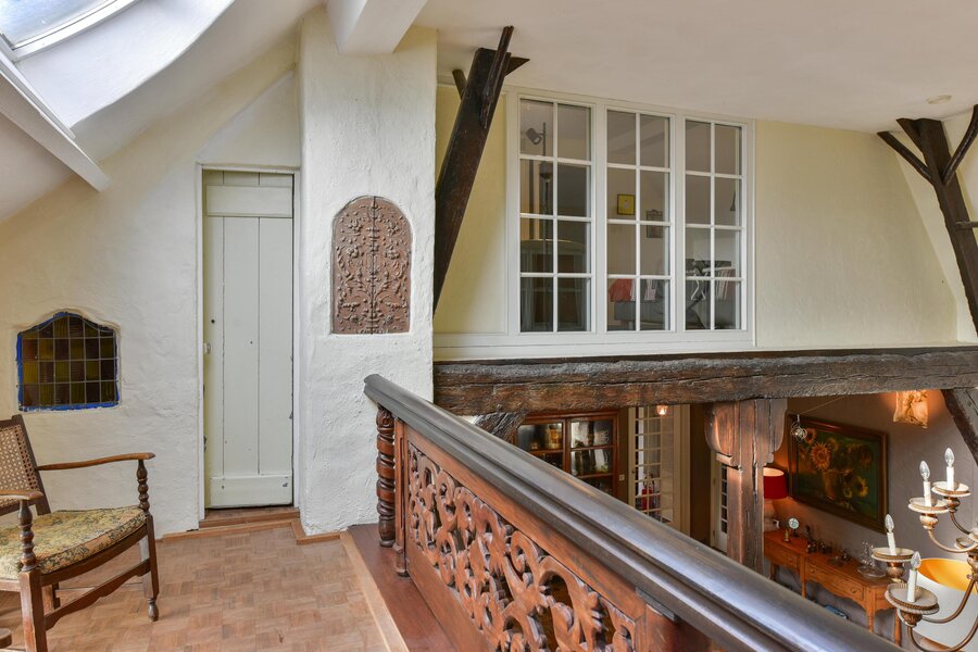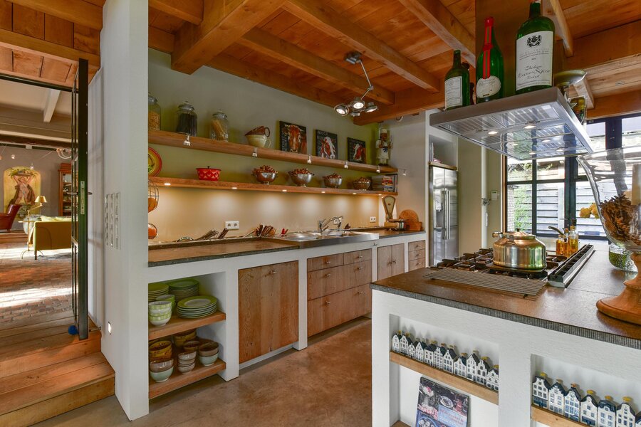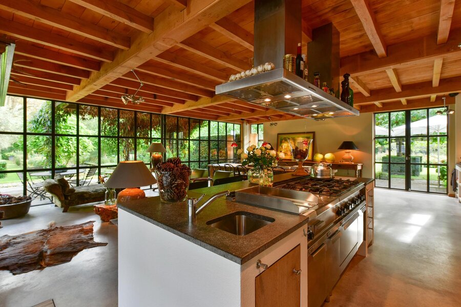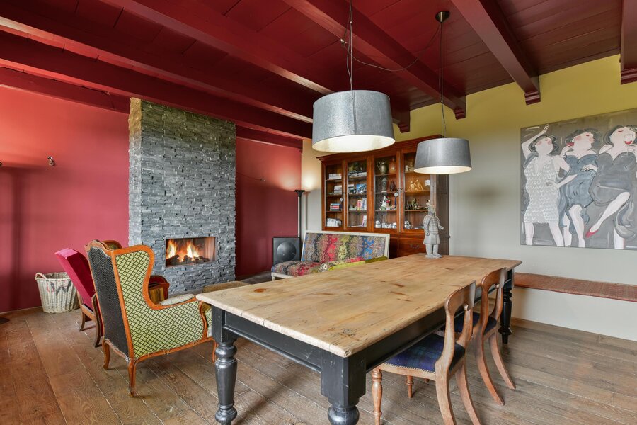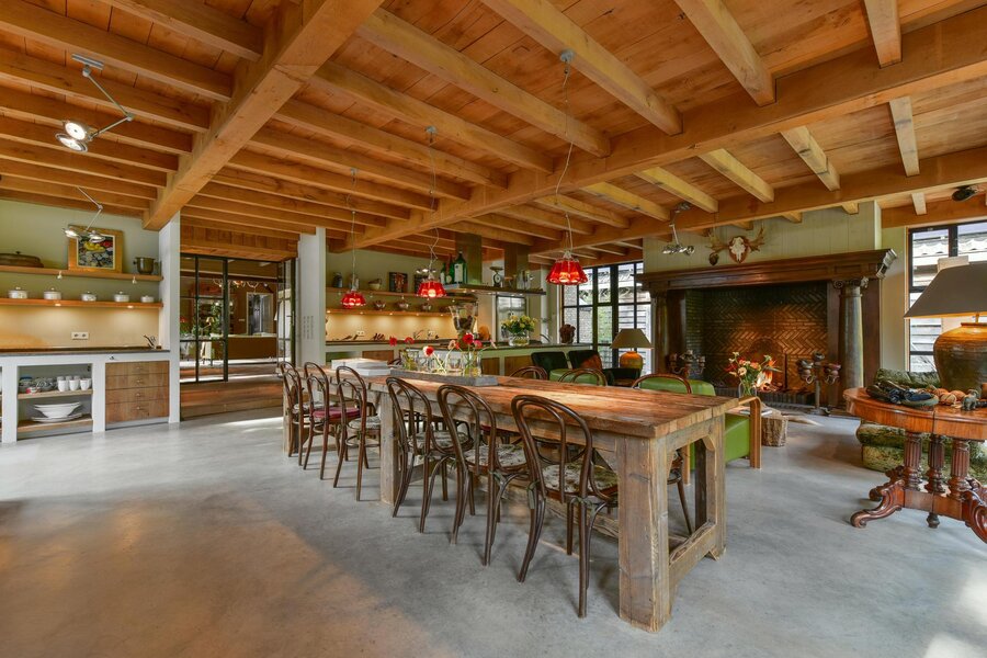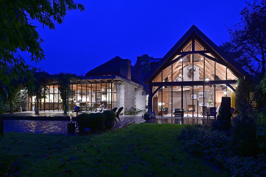 Wandelen langs de vijvers en lanen in je eigen park en even bijkomen met een kopje koffie bij de imposante schouw in de woonkeuken. Wonen in hofstede De Heulhoeve betekent genieten van de ultieme vrijheid die dit schitterende landgoed biedt. Het leven stroomt hier binnen en buiten. U deelt dit landgoed met een diversiteit aan vogels, zoals de fazant en de Vlaamse gaai. Daarnaast bezoeken hazen en soms ook reeën de meer dan royale parktuin. De monumentale hoeve, stammend uit 1750, functioneerde tot midden jaren 60 nog als boerderij. Toen kocht de heer Homburg, een Amsterdamse antiquair, De Heulhoeve. Hij verbouwde het pand met allerlei antieke elementen, zoals beelden, houtsnijwerk en deuren uit Frankrijk en Spanje, tot woonboerderij. Het unieke, robuuste karakter dat de antiquair creëerde, ademt nog altijd door de hofstede. De sfeer van het goede leven is tot in elke vezel voelbaar in de bijzondere living waar de hoge schouw en zichtbare gebinten voor gezelligheid zorgen. In de woonkeuken scheppen de grote raampartijen met roedeverdeling en het balkenplafond geborgenheid. Hier tafelt u urenlang met familie en vrienden om vervolgens een laatste drankje te nuttigen bij de imposante schouw. En wat dacht u van een afsluitende wandeling in uw eigen parktuin. Tuinarchitect Arend Jan van der Horst borduurde voort op het terrasontwerp van Mien Ruys en ontwierp een verrassend park met meerdere waterpartijen waaronder een grote, natuurlijke vijver met een steiger. Hier geniet u samen van de opkomende of ondergaande zon.