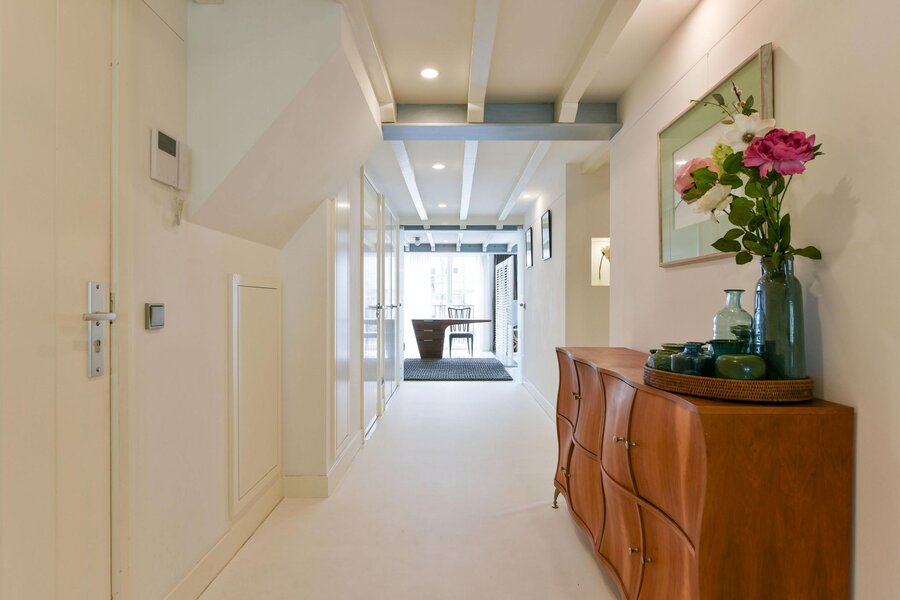 The apartment is part of Rijksmonument ‘Grote Swaen’, originally built in 1624. Over the years, the complex has been well maintained, with the foundation being renewed in 1948, among other things, and a complete internal renovation in 2014 The current owners bought the shell space in that year and have renovated it with great care and attention to the beautiful state it is in today. In the process, an open plan has been put down where space and light have been included as key points. Walls are extra solid by using the right materials, extra insulation is added to the ceiling, luxury lighting plan and preparation in each room of utp and coax, high quality equipment and a CV with overcapacity, in combination with underfloor heating. In short, everything has been thought of!
