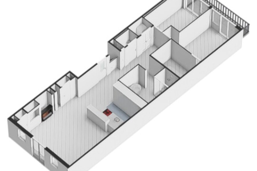 Currently, the house has 1 bedroom. The possibility exists to divide this room into two, here is already taken into account with the layout. See the option drawing attached. It is also included in the deed of subdivision that it is allowed to place a balcony at the rear no deeper than 1.4 m. On the attached option drawing this is made clear. All this under suspensive conditions of obtaining an environmental permit.