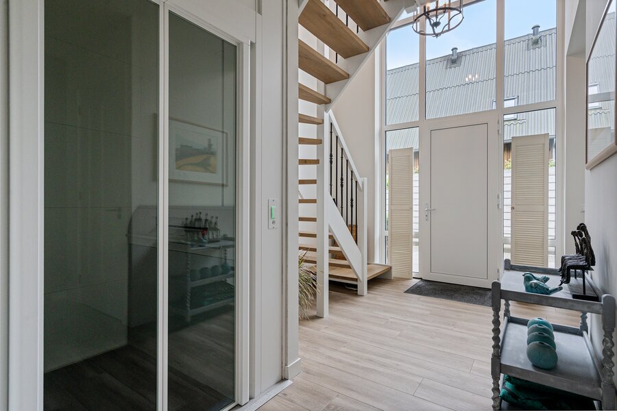 De aanwezigheid van een personenlift onderstreept het comfort en de toegankelijkheid van deze moderne woning.