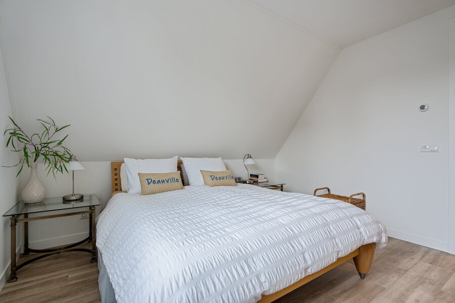 Op de eerste verdieping bevinden zich 3 ruime slaapkamers en 2 badkamers. De master bedroom met badkamer en suite, toilet, dubbele wastafel, regendouche en walk-in closet en twee ruime gelijkwaardige slaapkamers waarvan één nu in gebruik is als werkkamer. Ook bevindt zich hier nog een extra separate badkamer met toilet, wastafel en regendouche.