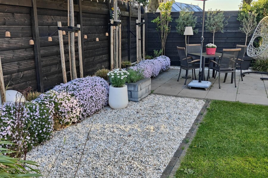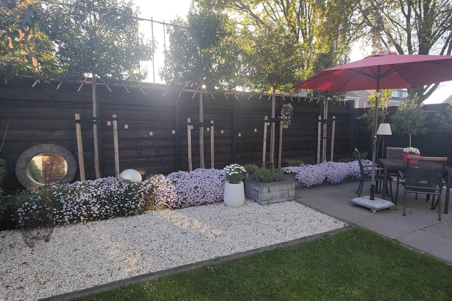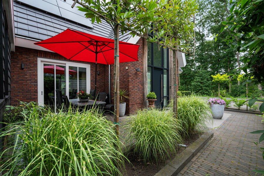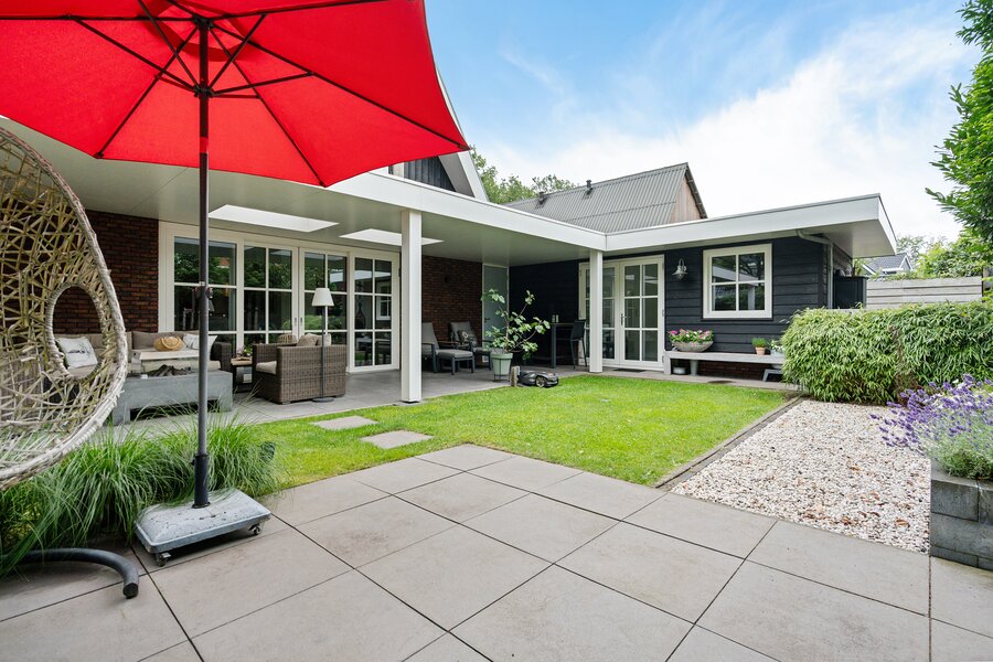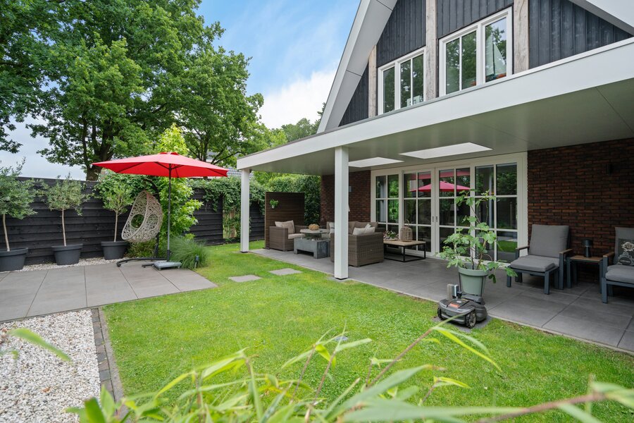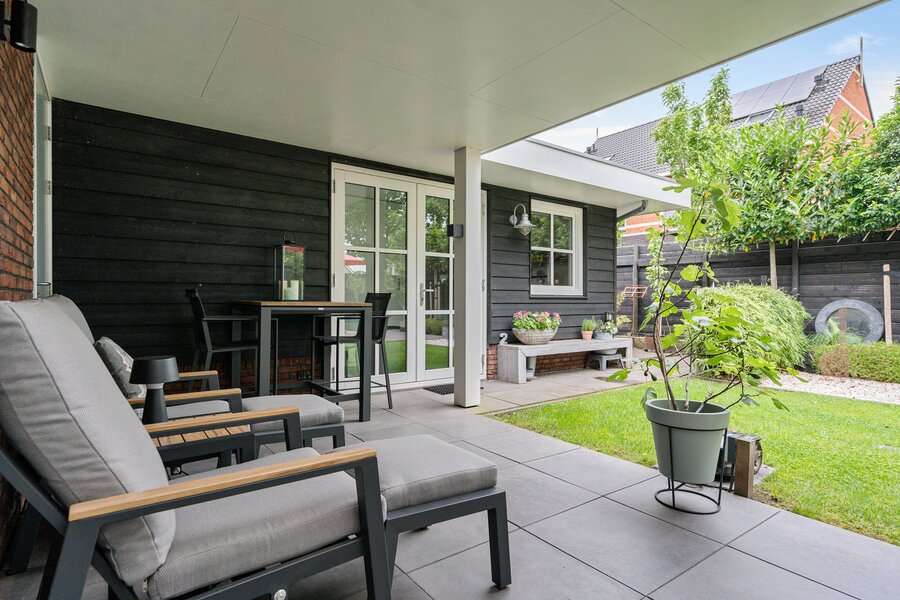 De tuin met oog voor detail en sfeer aangelegd kent buiten de veranda nog een zonnig terras.