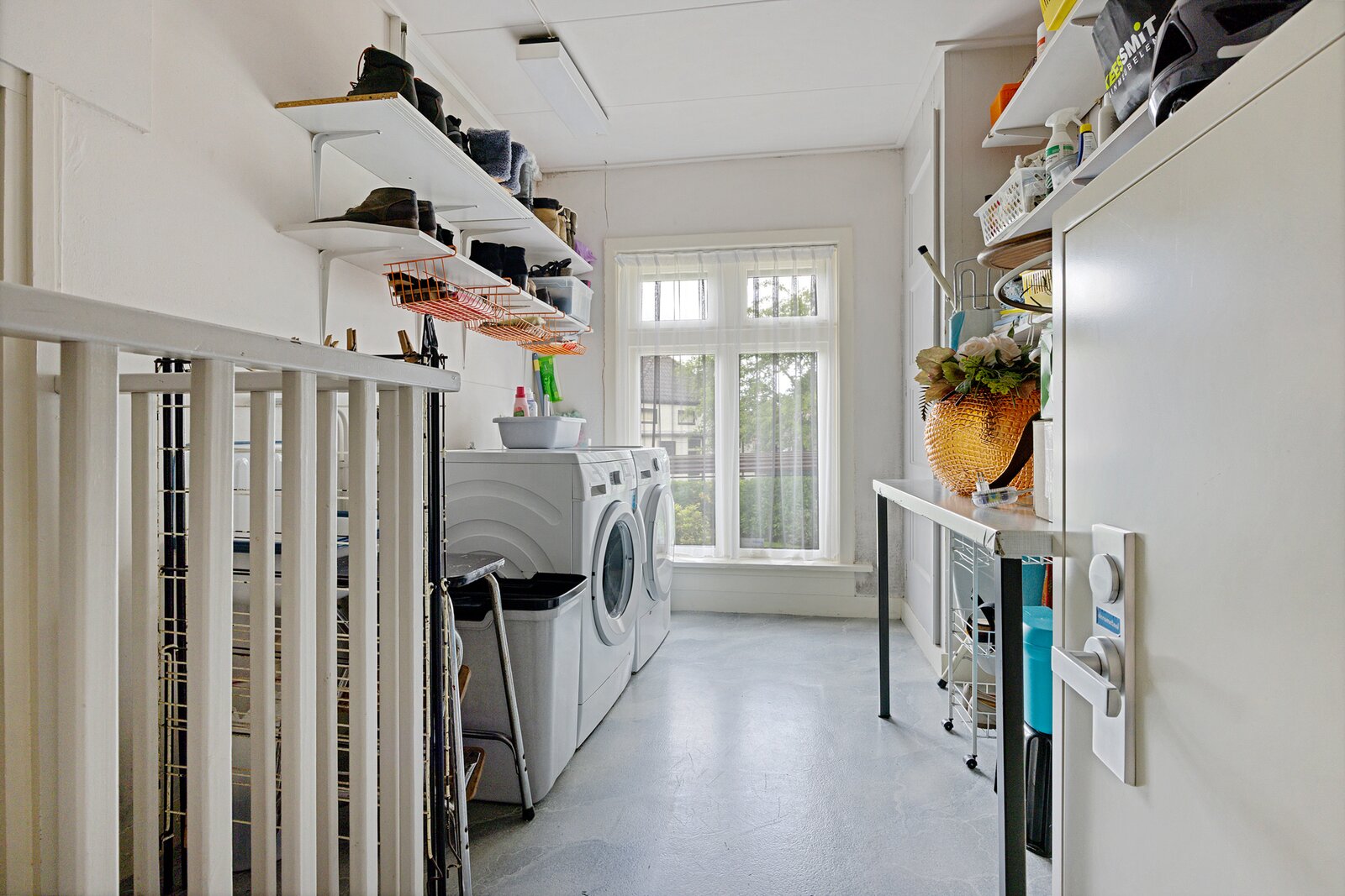 Binnenkomst in een statige hal met toilet. De begane grond biedt een royale en sfeervolle woonkamer met volop ruimte voor meerdere zithoeken. Aan de achterzijde is een tweede, lichte woonkamer gesitueerd met openslaande deuren naar de fraai aangelegde tuin. Hierdoor ontstaat een mooie verbinding tussen binnen en buiten. De ruime keuken vormt het hart van de woning en biedt meer dan voldoende ruimte voor een grote eettafel. De begane grond is tevens voorzien van een berging met aansluiting voor het witgoed.