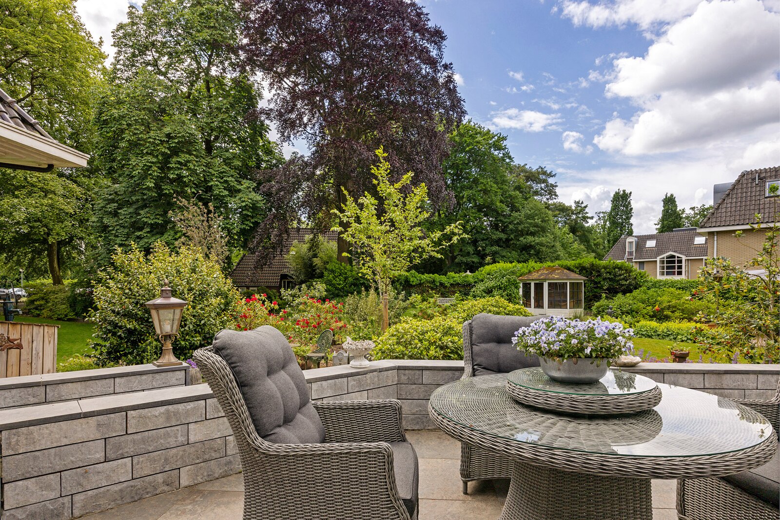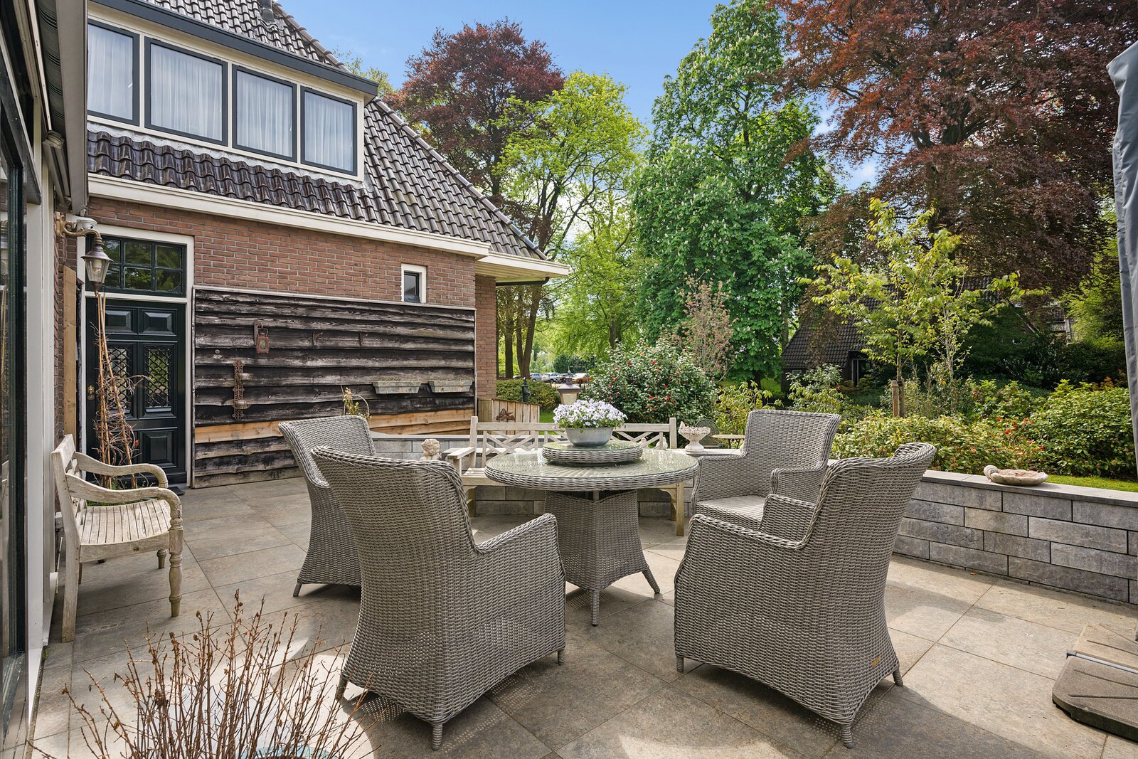 Buiten is het minstens zo indrukwekkend. Het perceel van maar liefst 2.642 m² is prachtig aangelegd met een tuin rondom en meerdere terrassen. Of het nu gaat om zon of schaduw, rust of gezelligheid – hier is altijd een fijne plek om van het buitenleven te genieten.