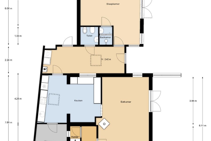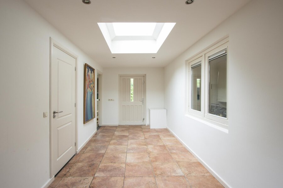 Je parkeert de auto eenvoudig voor de woning op je eigen grond en komt vervolgens binnen via de entree aan de voorzijde. In de hal, met granitovloer, is de meterkast alsmede een separaat toilet en kleine kelder.