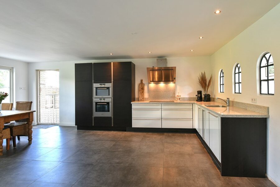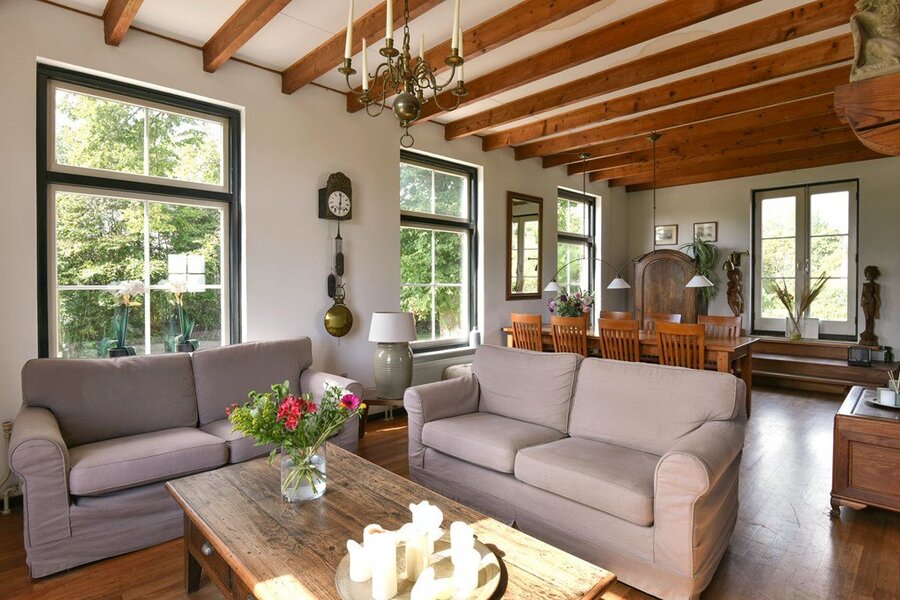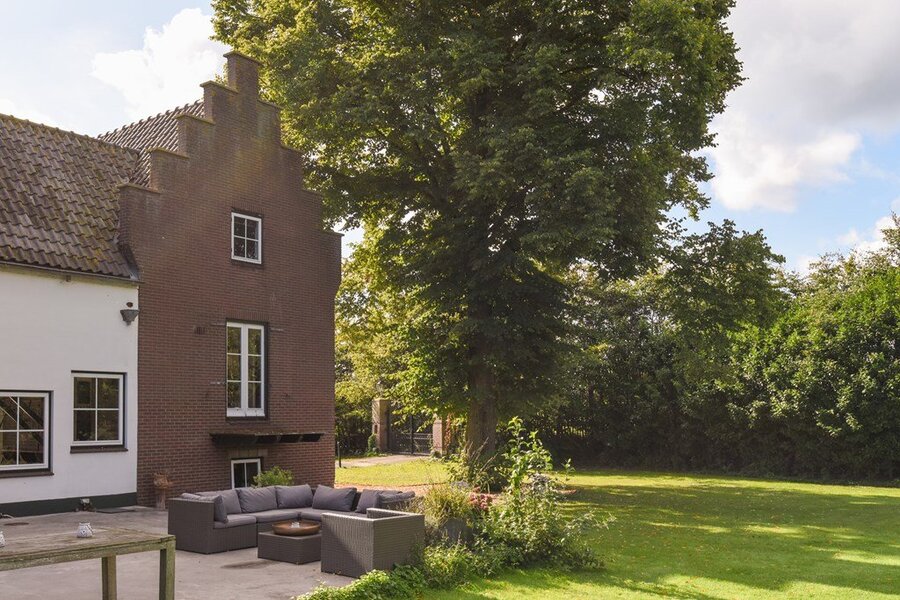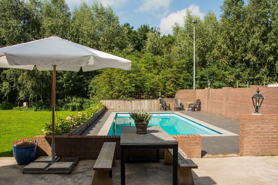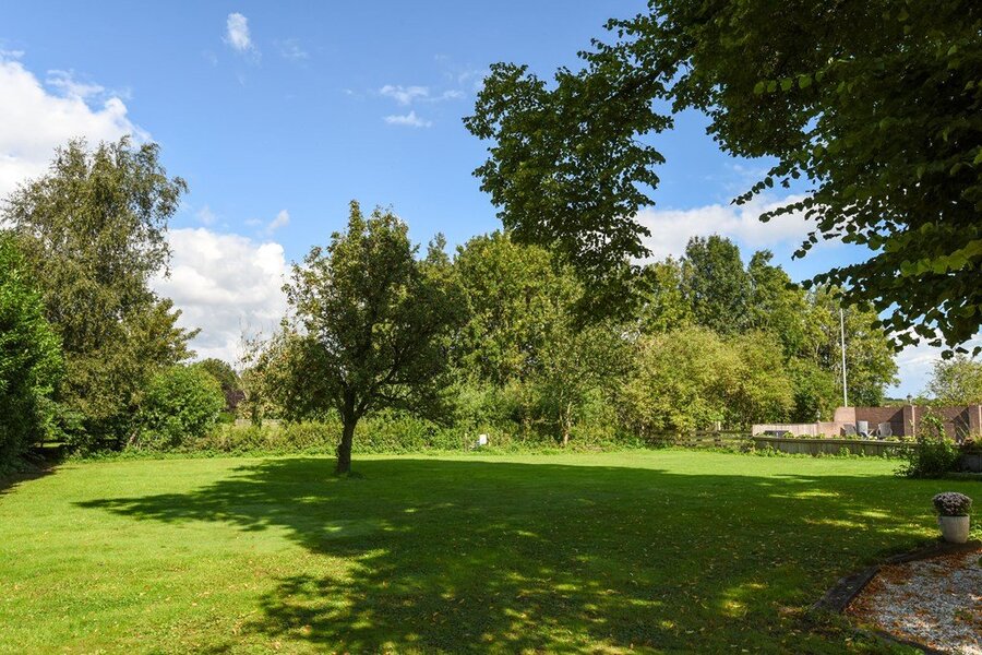 De tuin heeft diverse terrassen, een paarden paddock, voldoende parkeergelegenheid en een zwembad met ligging op het zonnige zuidwesten. Omdat de tuin grenst aan natuurgebied van natuurmonumenten bent u verzekerd van een blijvend weids uitzicht.