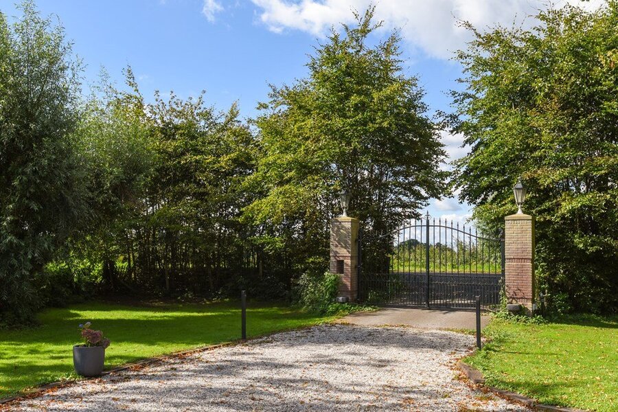 Het totale perceel beslaat 4.854 m2 en geeft veel privacy in de tuin. Het smeedijzeren hek en de oprit leidt u naar de eigen parkeerplaats voor meerdere auto's.