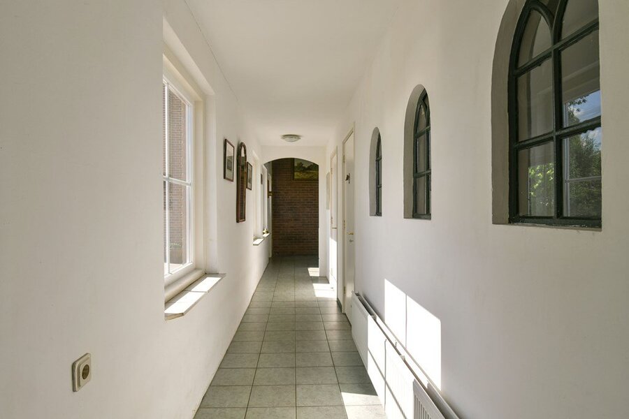 In de verschillende gebouwen zijn op de eerste verdieping 5 grote variërende slaapkamers. Waarbij de ouderslaapkamer een inpandige badkamer heeft. De 2 slaapkamers in het voorste gedeelte hebben beschikken over een badkamer met douche, toilet en wastafel. Aan de andere zijde bevindt zich het appartement met 2 slaapkamers, inloopkast, keuken met inbouwapparatuur en een badkamer met ligbad toilet en dubbele wastafel.