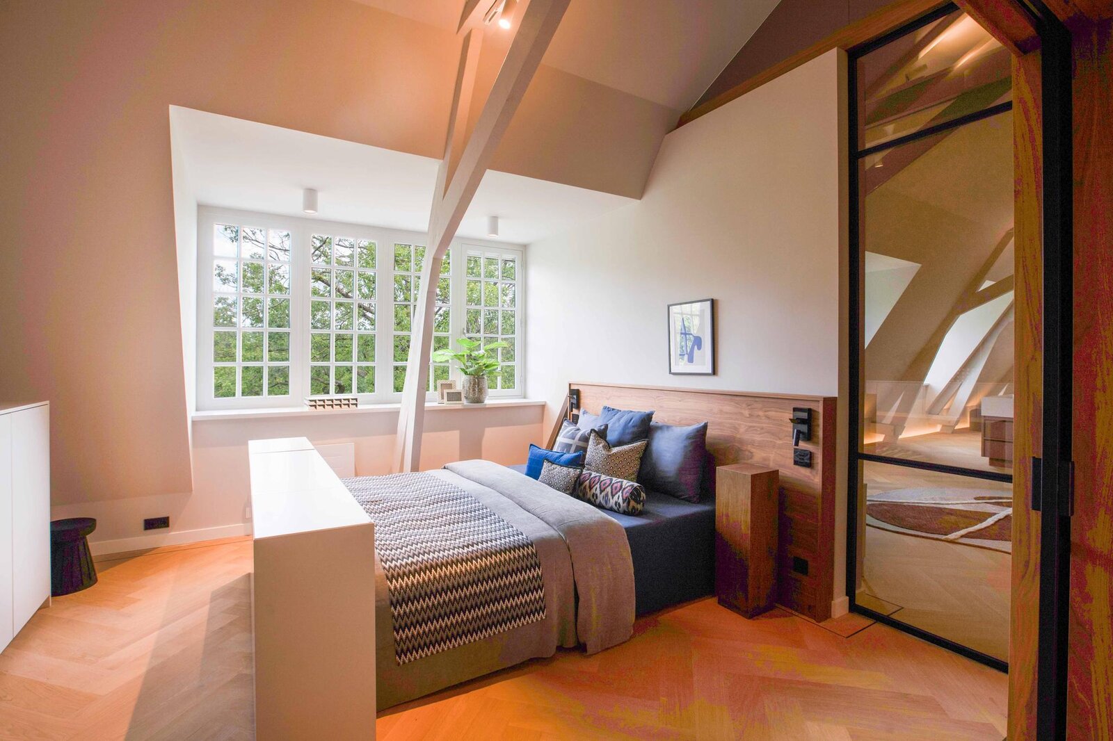 Sommige plekken ademen historie, luxe en vakmanschap, en dit uitzonderlijke penthouse aan het Klompven in Oisterwijk verenigt ze moeiteloos. In het monumentale voormalige hotel Bos & Ven, waar ooit koningin Emma en andere voorname gasten verbleven, bevinden zich nu veertien exclusieve villa-appartementen. Verdeeld over een karakteristiek pand in Engelse landhuisstijl en zorgvuldig gerestaureerd met behoud van de chique uitstraling en originele details. Omgeven door een weelderige tuin en gelegen aan één van de meest idyllische vennen van Brabant. Bovenin, direct onder de witgeschilderde houten kapconstructie, bevindt zich dit unieke penthouse van circa 170 m²: het grootste, meest luxueuze appartement van het geheel.
