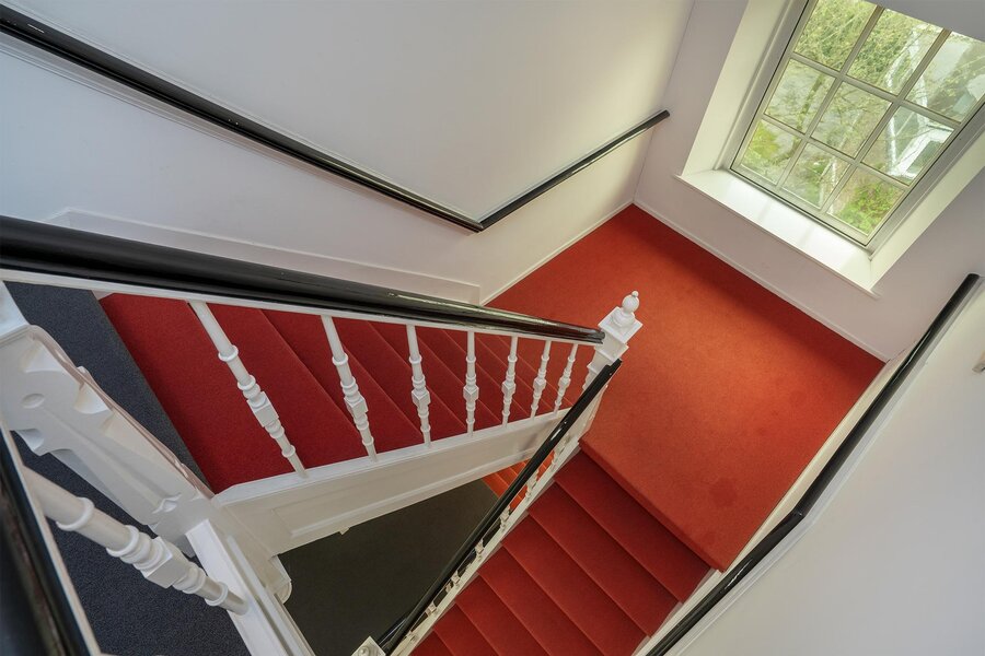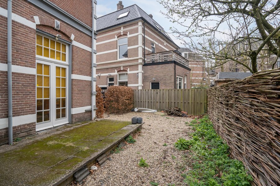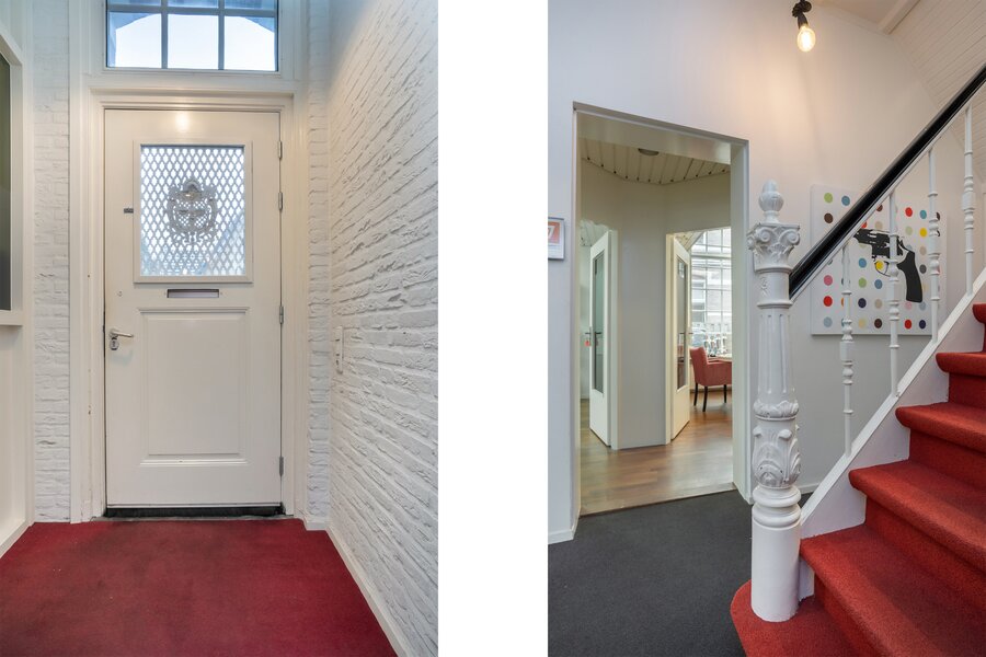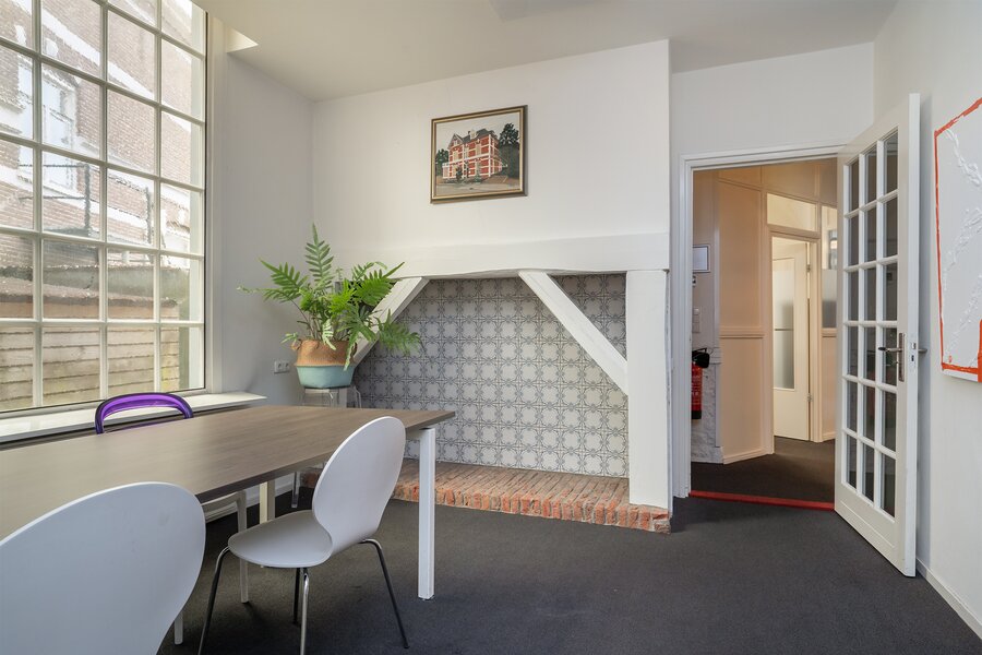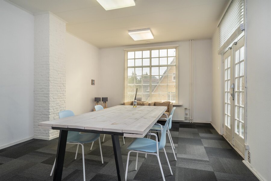 Nu met 4 kamers en keuken, maar als woonhuis eenvoudig te switchen naar een ruime ontvangsthal met openhaard, een grote woonkamer met serre, grote imposante openhaard en zowel openslaande deuren naar de zijkant als de tuinzijde van het pand. De keuken met tevens opslaande deuren zit in de uitbouw aan de tuinkant en grenst aan de oorspronkelijke keuken, met de origineel betegelde schouw waar vroeger het ´hout gestookte´ fornuis stond. De aanbouw vervangen door een mooie glazen serre en van het geheel één woonkeuken maken, zou een fantastisch idee kunnen zijn!