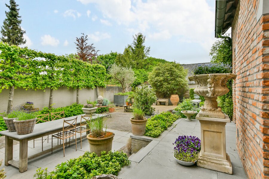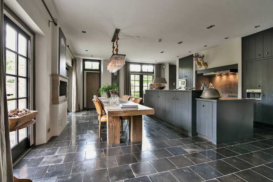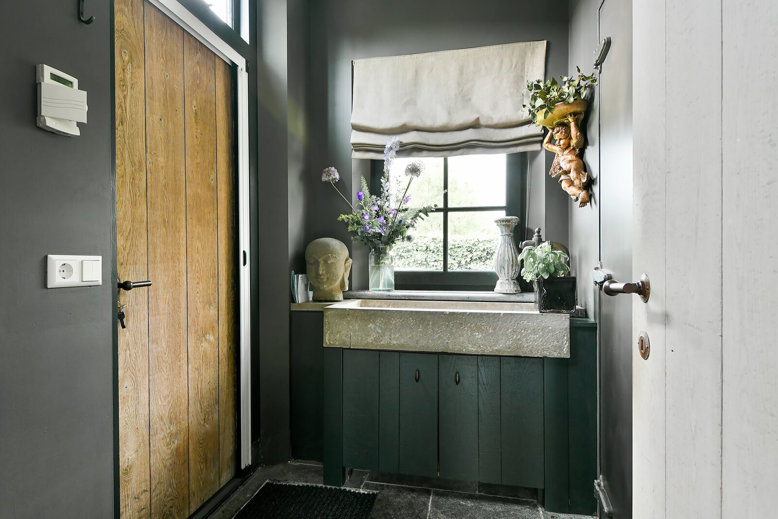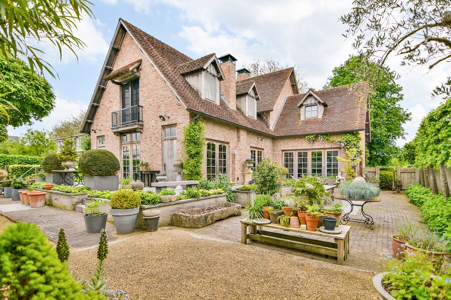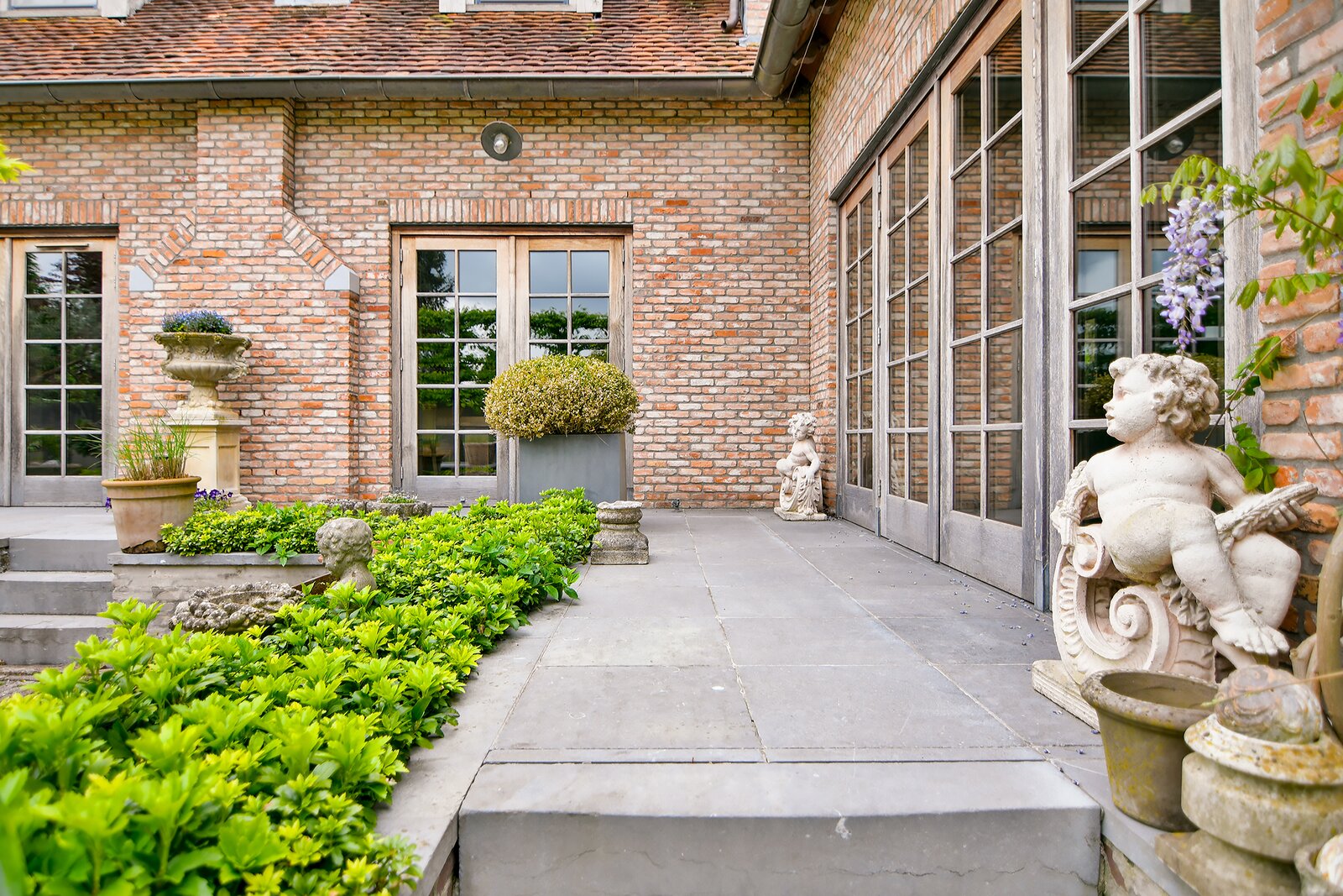 The surrounding garden is beautifully landscaped with several terraces, so you can always find sun or shade. At the rear of the property is a former warehouse measuring approximately 20 x 12 meters and two rented industrial warehouses of approximately 430 m² and 294 m², offering additional storage, parking, and other uses.