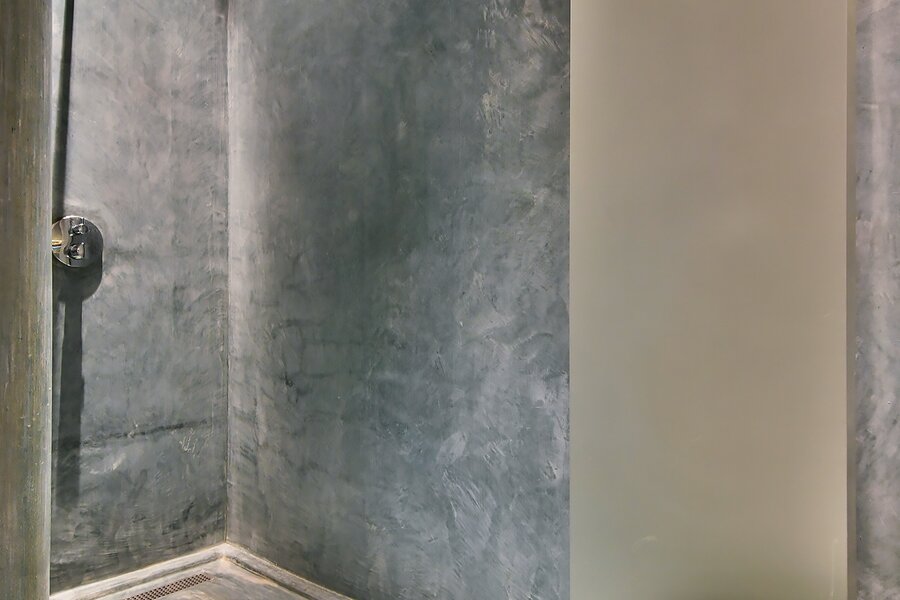 The first floor contains three generous bedrooms and two luxurious bathrooms. The master bedroom is spacious, with a Juliet balcony, dressing room, and ensuite bathroom featuring a double sink, walk-in shower, and toilet. The second bedroom has its own bathroom and is connected to the dressing room, but remains independently accessible. The third bedroom is currently used as a work/study.