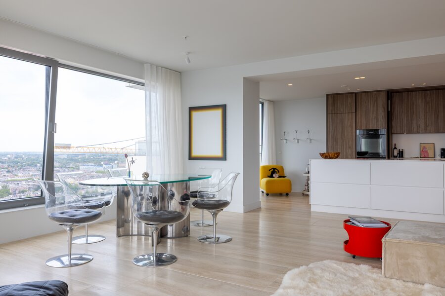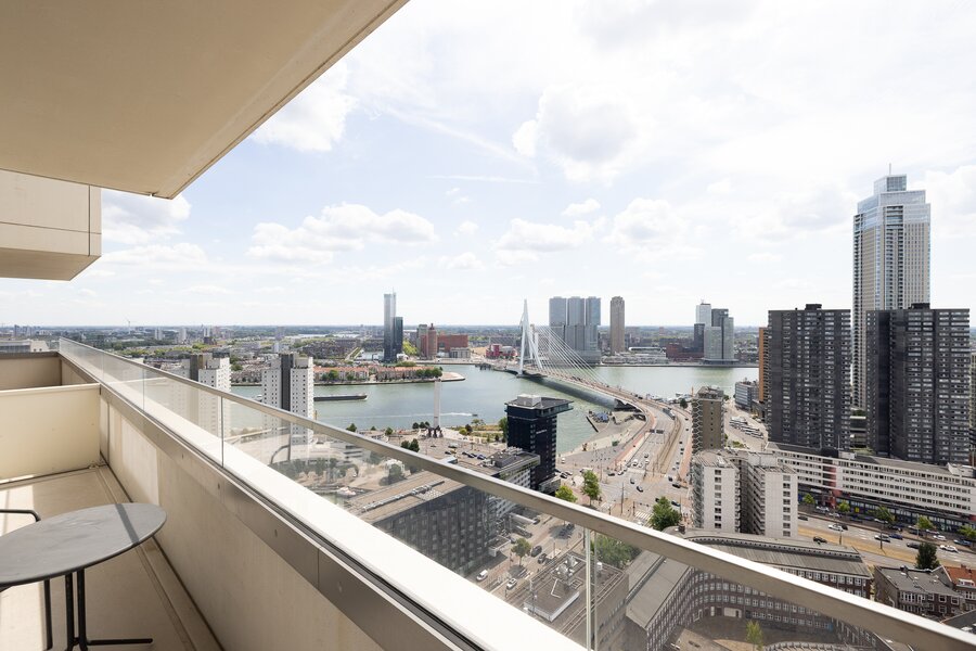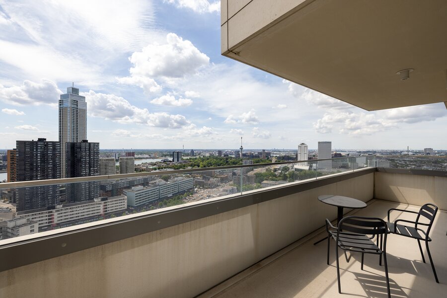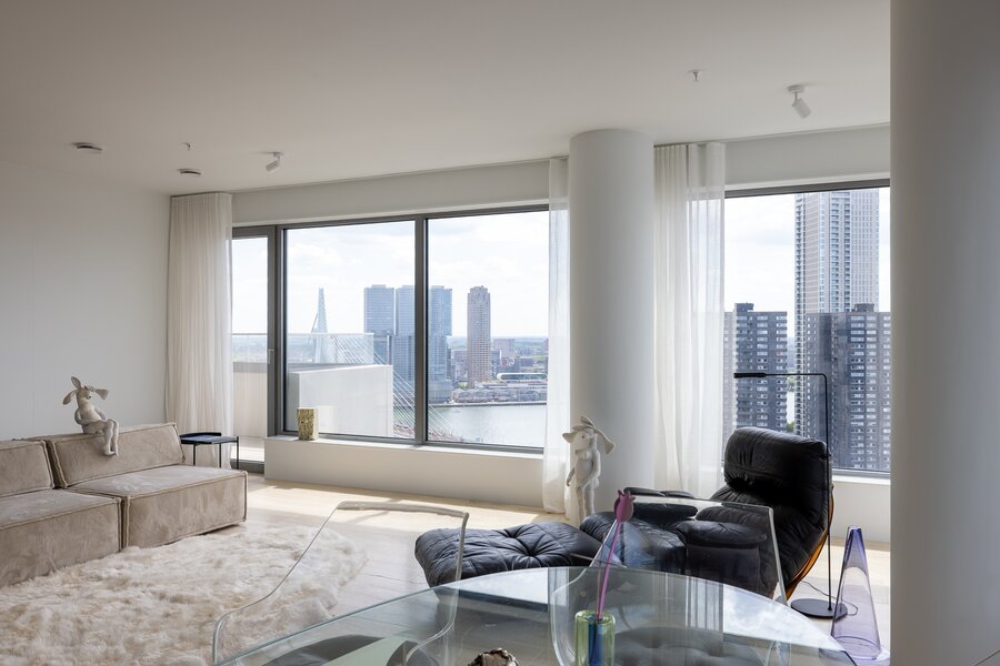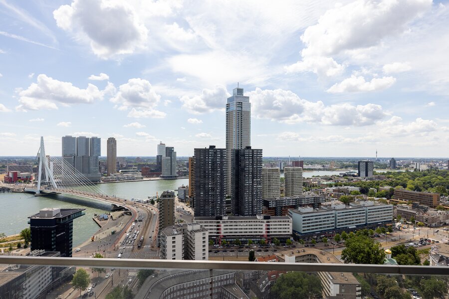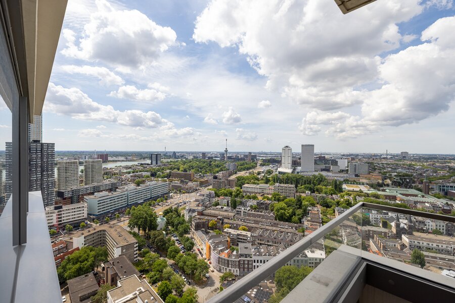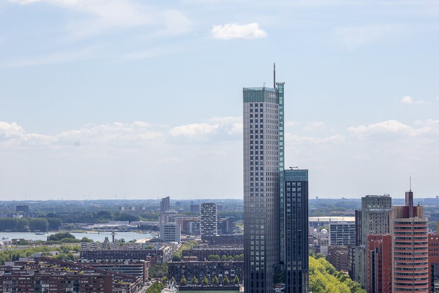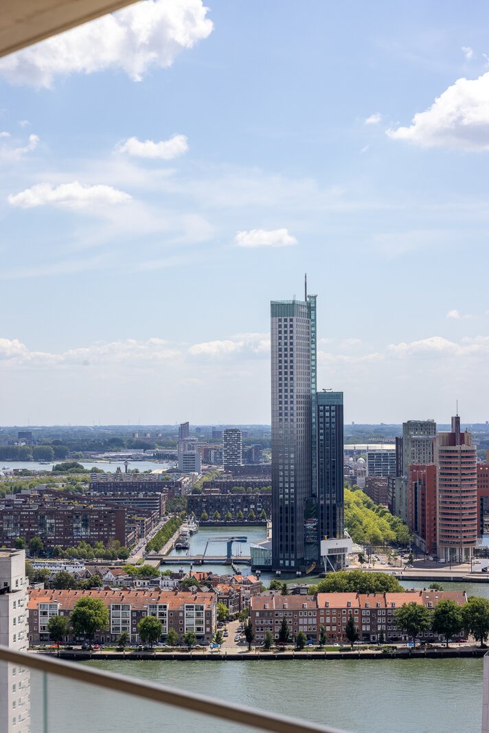 Wonen op hoogte krijgt een nieuwe dimensie in dit prachtige vierkamer hoekappartement op de 31e verdieping van The CoolTower. Gelegen op de meest ideale zuidwesthoek van het gebouw biedt dit appartement een werkelijk fenomenaal uitzicht over Rotterdam, de Maas, het Scheepvaartkwartier en de havens. Met een woonoppervlakte van 144 m², twee ruime terrassen van in totaal 28 m² én een zeer hoogwaardige afwerking is dit een unieke kans in het hart van de stad.