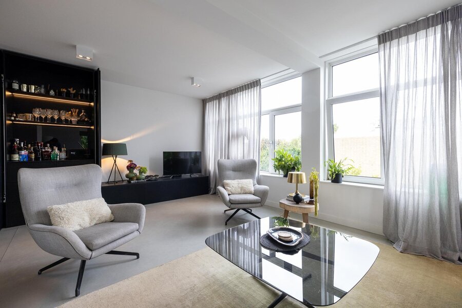 Dit unieke dubbele en modern verbouwde Top-appartement is gelegen op de 3e verdieping van een kleinschalig complex. Voorheen waren dit twee appartementen die zijn verbouwd tot een zeer luxe en modern