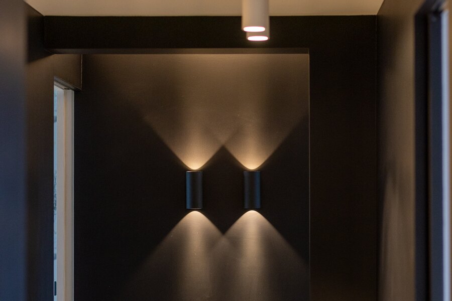 Centrale entree met trappenhuis naar de verdiepingen en toegang naar de bergingen.