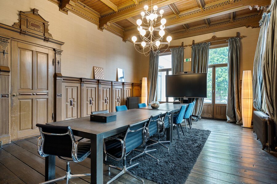 Elke ruimte heeft een eigen karakter, terwijl het pand als geheel een samenhangende, monumentale uitstraling behoudt.