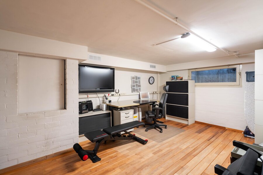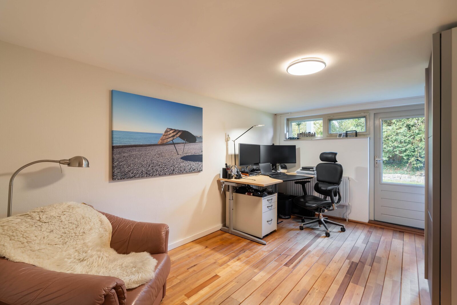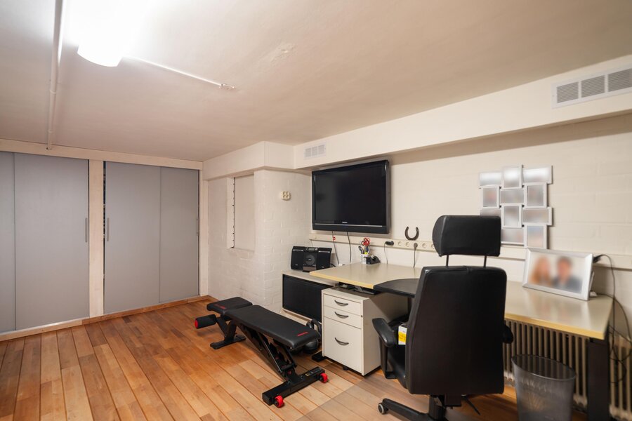 In het lager gelegen souterrain niveau bevindt zich nog een ruime multifunctioneke kamer. De kamer is voorzien van praktische muurkasten. Vanuit deze kamer is er toegang tot de kruipruimte. De kamer is thans ingericht als thuiswerkplek/hobbyruimte maar biedt tevens voldoende ruimte voor een (tweepersoons)bed, kledingkast en/of een dressoir.