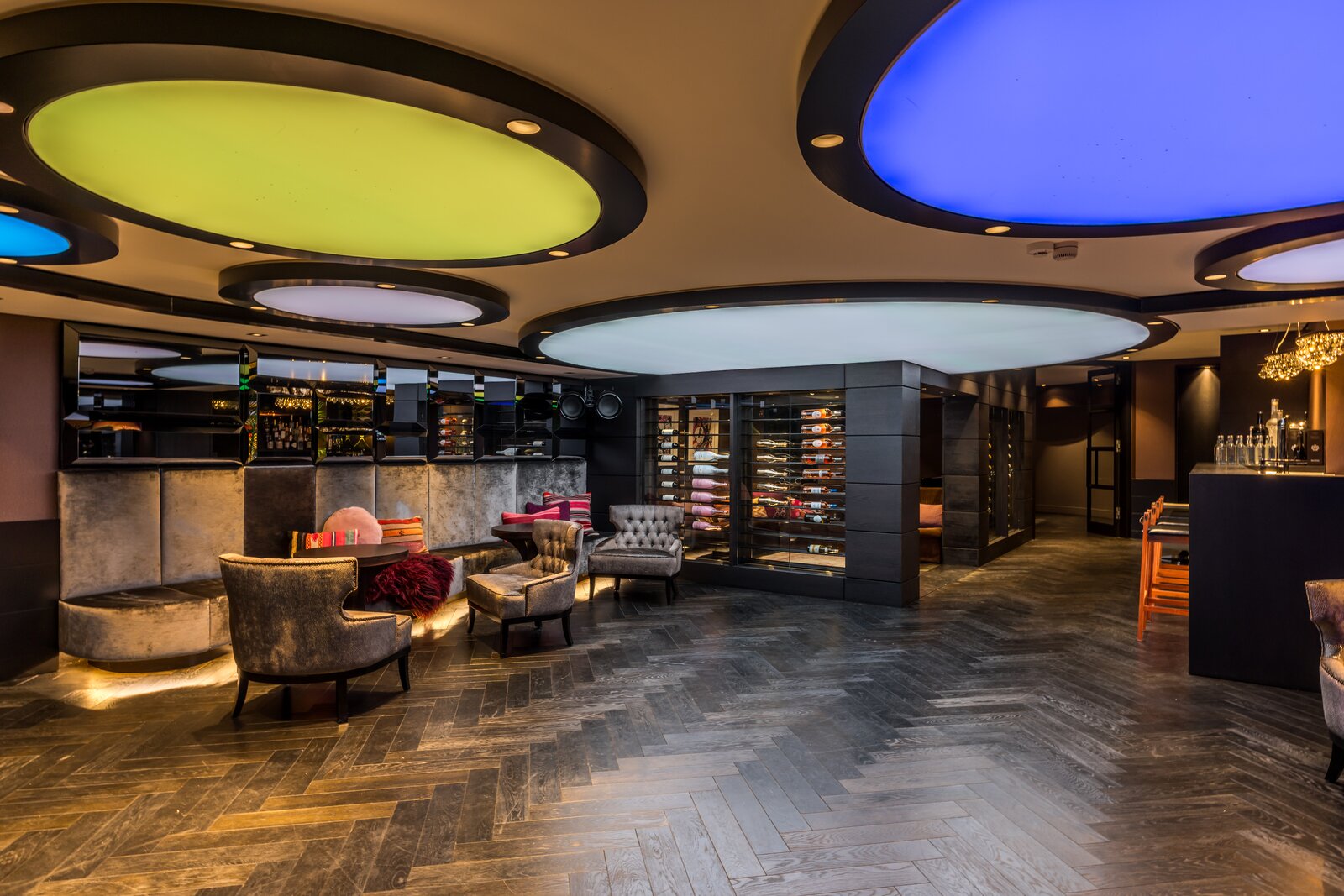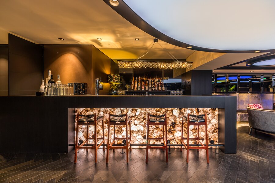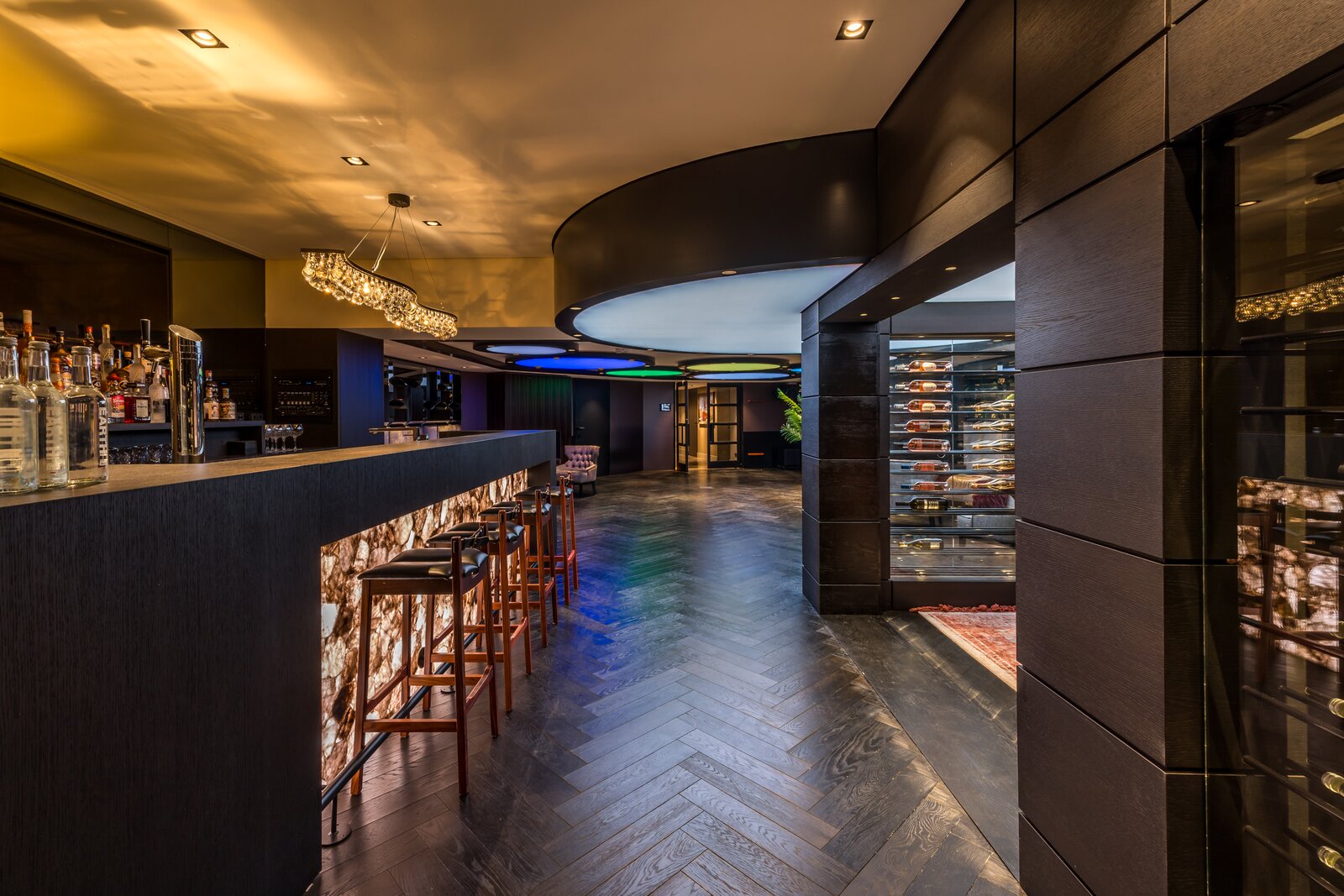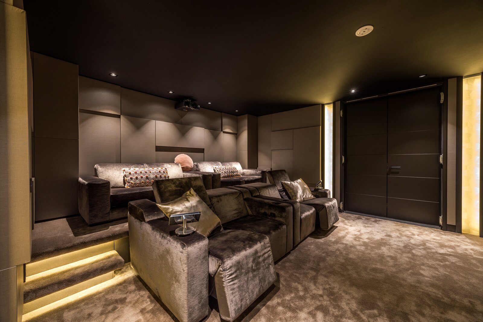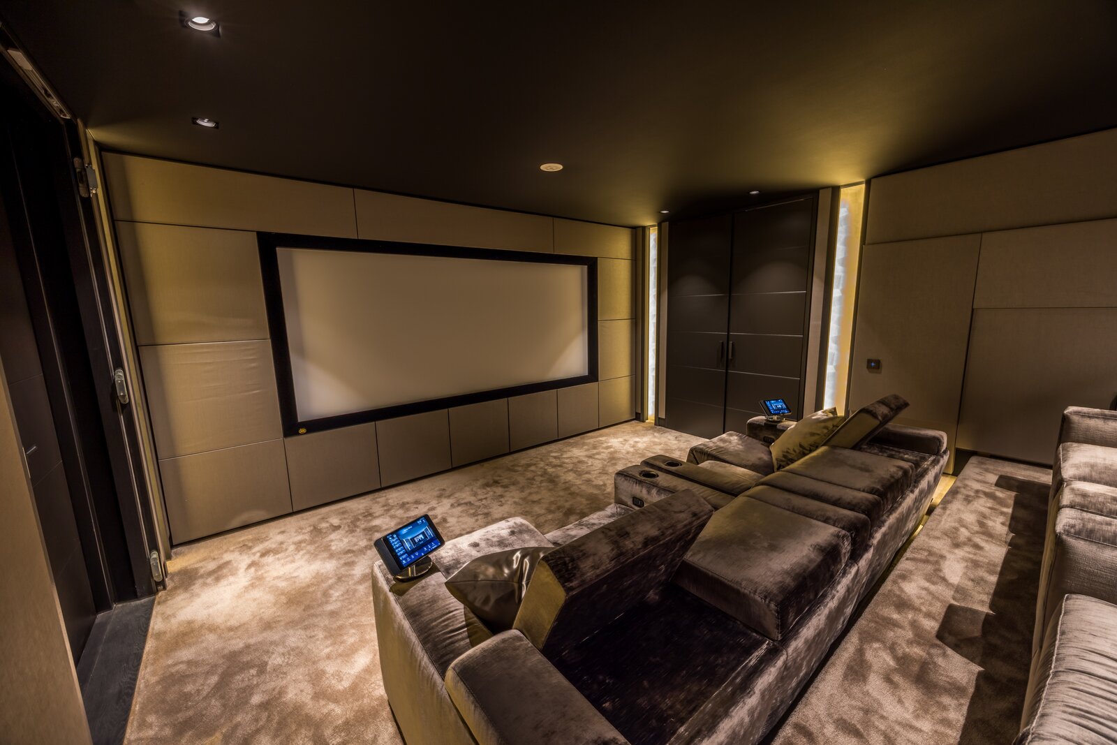 High-end DALI lighting, exclusive Basalte controls, fiber-optic video distribution, and extensive AV infrastructure