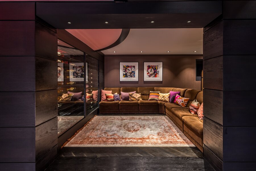 For entertainment and hosting, every detail has been considered. One level below, this masterpiece offers a dedicated leisure floor featuring a fully equipped bar, multiple lounge areas, billiards and pool facilities, and a professional home cinema with luxury reclining seating and high-end sound experience. With no fewer than 26 television screens throughout the home and a fully integrated audio-visual system, technological comfort is seamlessly incorporated.