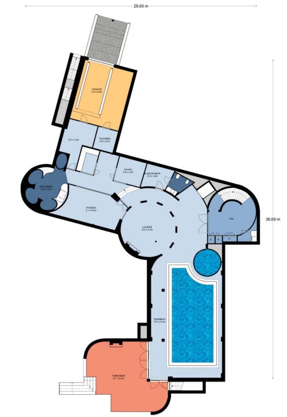 What makes this estate truly extraordinary is its dedicated wellness and leisure area a complete private retreat within the residence itself. This wellness and entertainment level is of rare scale and designed with an emphasis on comfort, relaxation, and experience, comparable only to the finest luxury resorts.