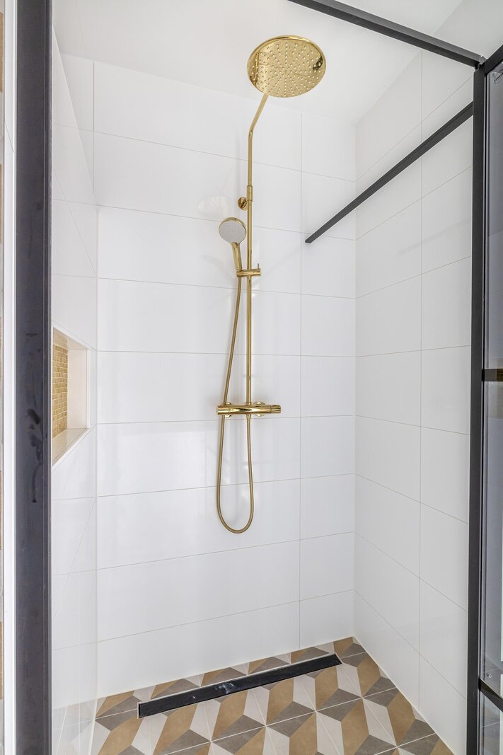 Three spacious bedrooms—each with its own character—offer ample space for family members or guests. The bathroom features a bathtub, separate shower, double sink, and toilet. From the landing, there is access to a charming rooftop terrace: an oasis in the heart of the city.